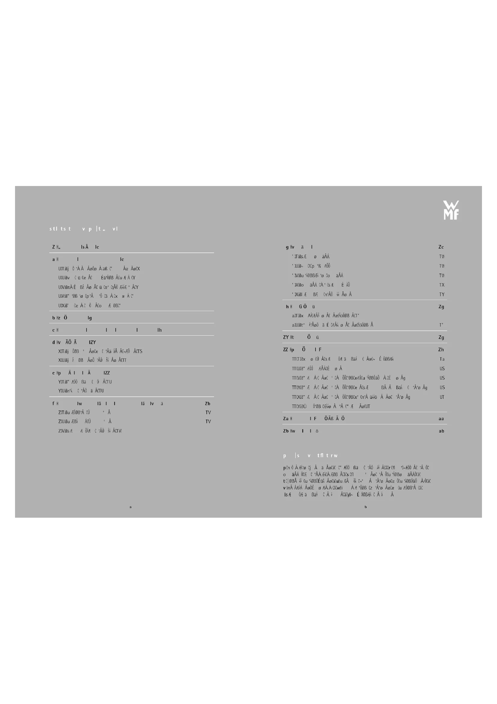 DE Bedienungsanleitung 2 EN Operating Instructions 28 FR Notice d’utilisation 54 ES Instrucciones de uso 80 IT Istruzioni per l’uso 106 CS Návod k obsluze 132 DA Betjeningsvejledning 158 FI Käyttöohje 184 NL Gebruiksaanwijzing 210 NO Bruksanvisning 236 PL Instrukcja obsługi 262 PT Manual de instruções 288 RO Instrucţiuni de utilizare 314 RU Инструкция по эксплуатации 340 SV Bruksanvisning 366 TR Kullanım Talimatları 392 WMF PERFECTION 800L-SERIES 7/24DE BEDIENUNGSANLEITUNG 1|Technische Daten 4 2|Wichtige Sicherheitshinweise 4 2.1|Bestimmungsgemäße Verwendung 5 2.2|Nur für den europäischen Markt 6 2.3|Empfehlungen für die Installation 6 2.4|Wichtige Hinweise zum Produkt 8 2.5|Vor dem ersten Gebrauch 8 3|Komponenten 8 4|Unterschiede zwischen den einzelnen Modellen 9 5|Gesamtansicht 10 5.1|Beschreibung der einzelnen Tasten 10 5.2|Beleuchtungseinstellungen 11 6|Aufbau der Maschine 11 6.1|Wasserhärte testen 12 6.2|Filter einsetzen 12 7|Wichtige Hinweise vor der Zubereitung von Getränken 13 7.1|Maschine vorbereiten 13 7.2|Mahlwerk vorbereiten 13 7.3|Kaffeeauslauf einstellen 14 DEBEDIENUNGSANLEITUNG 8|Getränke zubereiten 14 8.1|Kaffeegetränke 14 8.2|Tee / Heißwasser 14 8.3|Milchhaltige Getränke 14 8.4|Getränke mit Kaffeepulver 15 8.5|Dauerhafte Einstellungen 16 9|Profilmenüs 18 9.1|Profil anlegen und löschen 18 9.2|Lieblingsrezept anlegen und löschen 18 10|Einstellmenü 18 11|Allgemeine Pflege 19 11.1|Pflege von Kaffeesatzbehälter und Tropfschale 19 11.2|Wassertank pflegen 20 11.3|Warum und wie muss ich das Milchsystem pflegen? 20 11.4|Warum und wie muss ich den Kaffeebohnenbehälter reinigen? 20 11.5|Warum und wie muss ich die Einfüllöffnung reinigen? 21 11.6|Übersicht allgemeine Wartung 21 12|Sonstige Pflegemaßnahmen 22 13|Hilfe bei Störungen 23 ABBILDUNGSVERZEICHNIS A Erstmalige Benutzung | B Wasserhärte einstellen | C Zwei Tassen eines Getränkes auf einmal machen | D Zubereitung eines Milchgetränks | E Schnelle Milchspülung | FManuelle Tiefenreinigung des Milchsystems | GEntkalkungsprogramm | HAutomatische Reinigung der Maschine | IKaffeesatzbehälter entleeren | JTropfschale entleeren