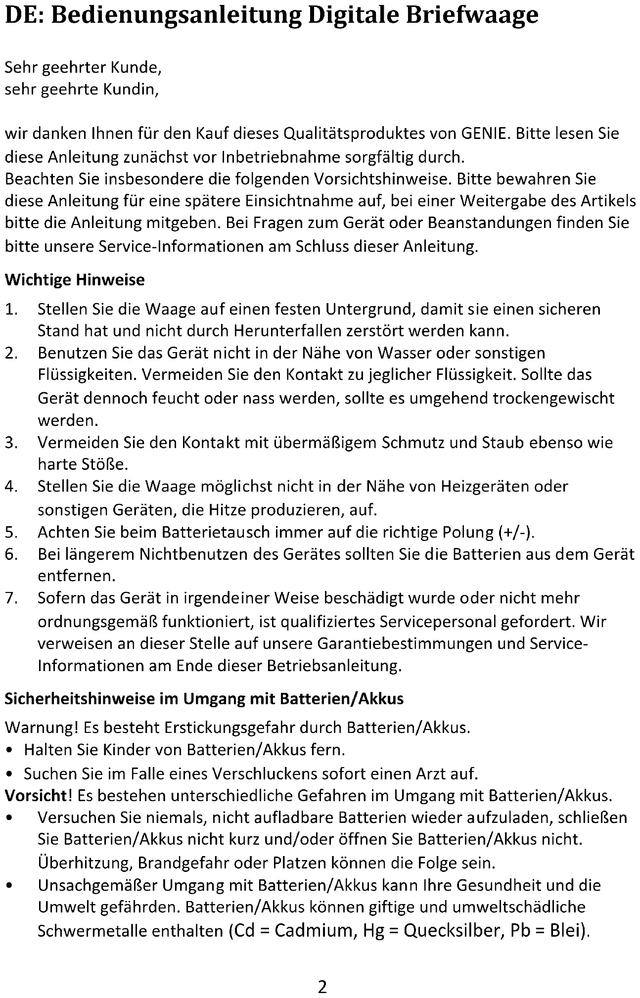 DLS 5 - Waagen Genie - Kostenlose Bedienungsanleitung