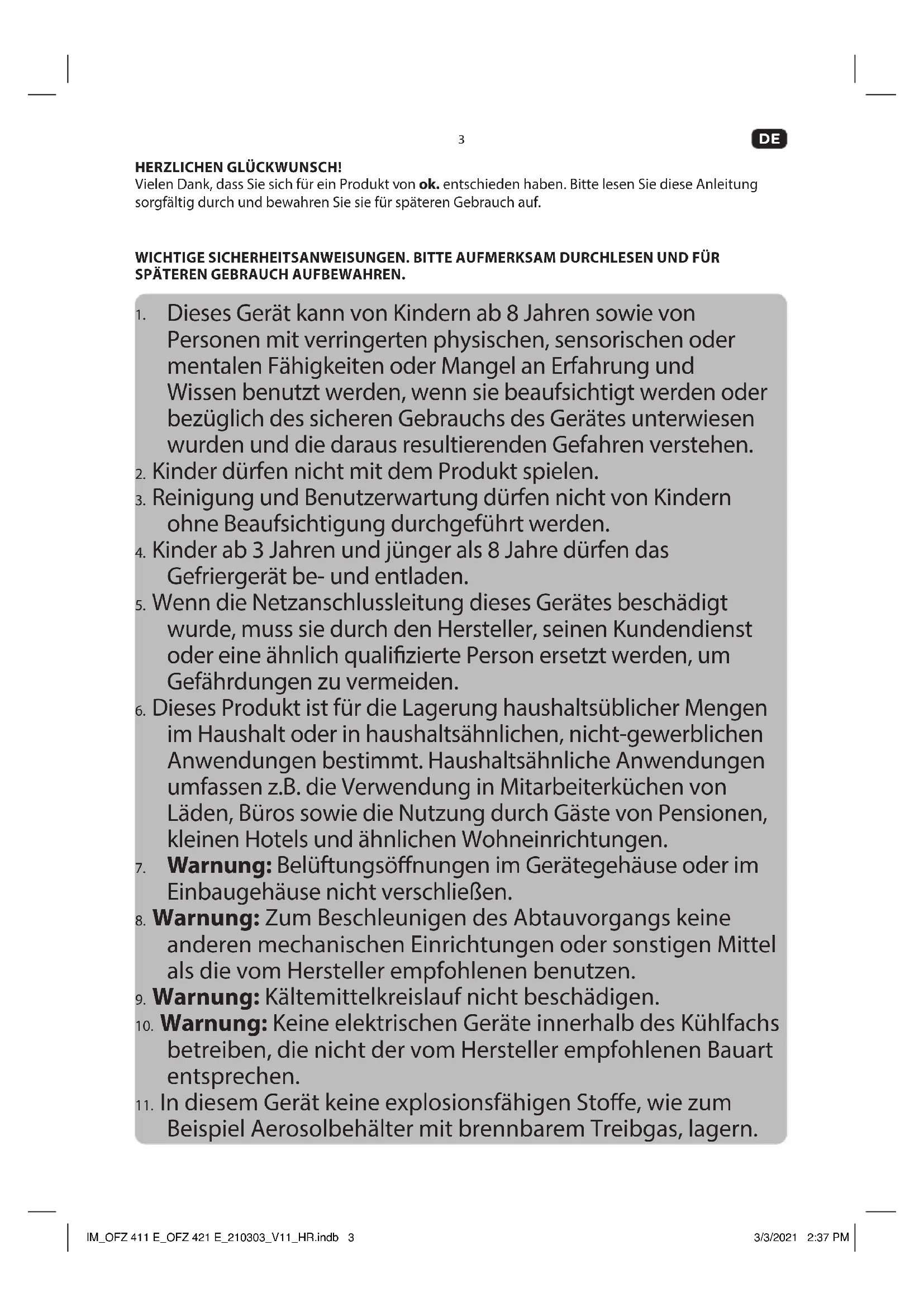 HERZLICHEN GLÜCKWUNSCH! Vielen Dank, dass Sie sich für ein Produkt von ok. entschieden haben. Bitte lesen Sie diese Anleitung sorgfältig durch und bewahren Sie sie für späteren Gebrauch auf. WICHTIGE SICHERHEITSANWEISUNGEN. BITTE AUFMERKSAM DURCHLESEN UND FÜR SPÄTEREN GEBRAUCH AUFBEWAHREN.