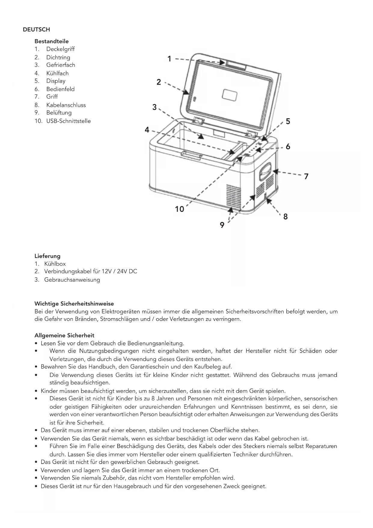 - Dieses Gerät ist nur für den Hausgebrauch und für den vorgesehenen Zweck geeignet.DEUTSCH Sicherheit im Gebrauch
