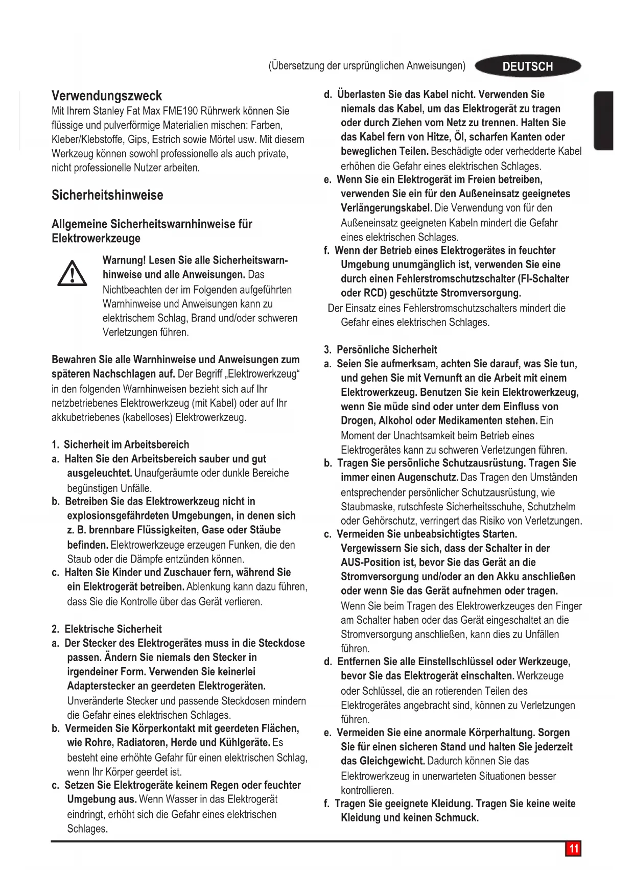Finden Sie kostenlos die Bedienungsanleitung des Geräts FME190 STANLEY als PDF.