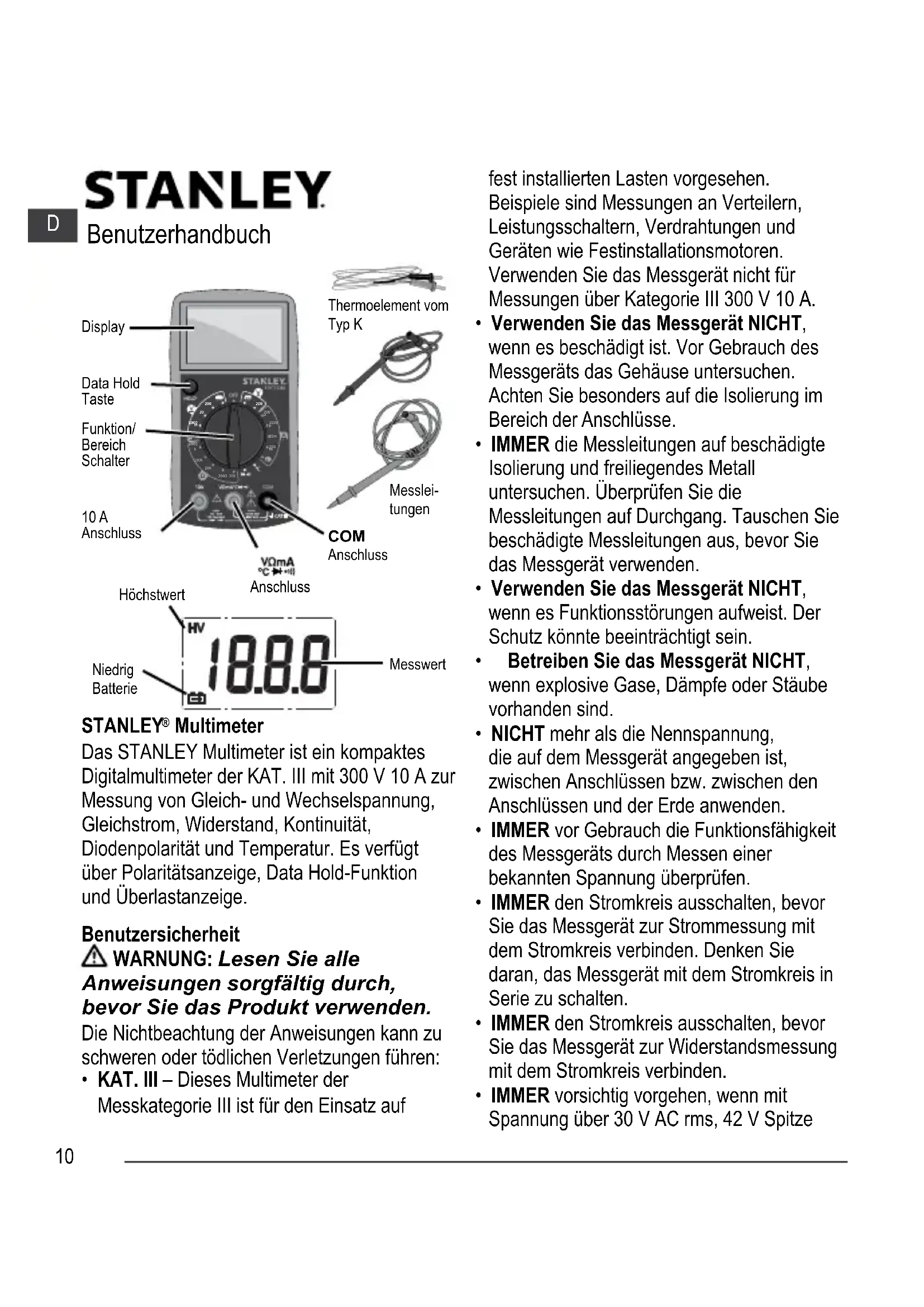 STHT077364 - Multimeter STANLEY - Kostenlose Bedienungsanleitung
