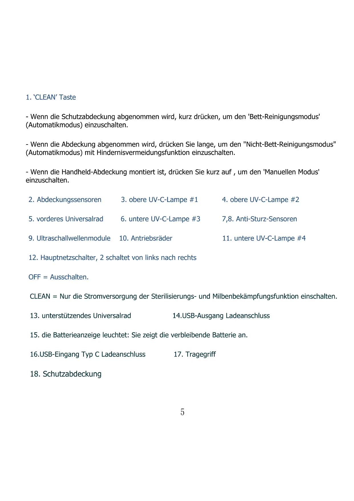 4. 'CLEAN'-Taste an der Oberseite lange drücken und in den Nicht-Bett-
