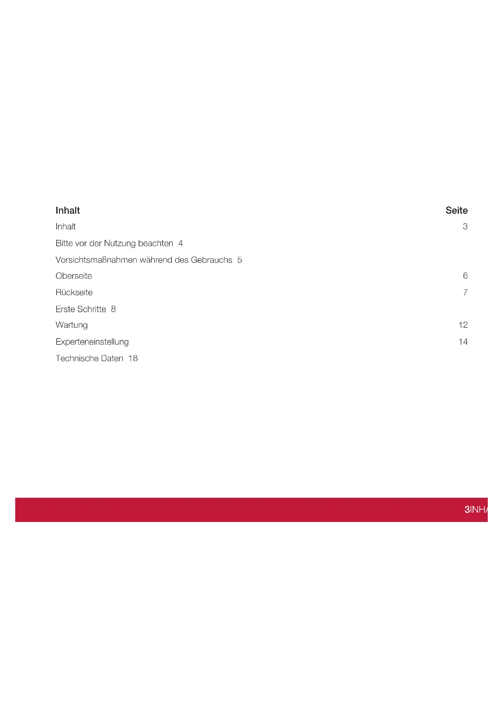 www.thorens.com Thorens GmbH Lustheide 85 · 51427 Bergisch Gladbach · Deutschland www.thorens.com · info@thorens.com3INHALT Inhalt Seite Inhalt 3 Bitte vor der Nutzung beachten 4 Vorsichtsmaßnahmen während des Gebrauchs 5 Oberseite 6 Rückseite 7 Erste Schritte 8 Wartung 12 Experteneinstellung 14 Technische Daten 184 SEHR GEEHRTER THORENS-KUNDE Bitte vor der Nutzung beachten Vielen Dank, dass Sie sich für THORENS entschieden haben. Bitte lesen Sie sich dieses Handbuch sorgfältig durch, um die beste Leistung des Plattenspielers zu erzielen.5VORSICHTSMASSNAHMEN WÄHREND DES GEBRAUCHS Vorsichtsmaßnahmen während des Gebrauchs Legen Sie nichts auf die Staubschutzabdeckung. Gegenstände auf der Abdeckung können aufgrund von Vib- rationen Geräusche verursachen oder herunterfallen, insbesondere während des Spielens. Stellen Sie das Gerät nicht auf einen Verstärker oder ein anderes Gerät, welches Wärme erzeugt. Dies kann zu Verfärbungen, Verformungen oder Fehlfunktionen führen. Vermeiden Sie bitte Orte, die Vibrationen ausgesetzt sind. Auch übermäßiger Staub, Kälte oder Feuchtigkeit können dem Gerät dauerhaft schaden zuführen. Da der Plattenspieler während des Betriebs warm werden kann, lassen Sie bitte immer genügend Platz für die Belüftung. Bei der Aufstellung ist insbesondere darauf zu achten, genügend Abstand zu anderen Geräten und Wänden einzuhalten, um eine gute Wärmeableitung zu ermöglichen. Bewegen Sie das Gerät nicht und heben Sie es nicht an, während es sich in Funktion befindet und sich der Plattenteller dreht. Andernfalls können die Schallplatte, die Abtastnadel, das Tonabnehmersystem oder das Gerät beschädigt werden. Entfernen Sie immer zuerst die Schallplatte, bevor Sie dieses Gerät an einen anderen Platz stellen oder es bewegen. Ansonsten können die Schallplatte, die Abtastnadel und das Tonabnehmersystem beschädigt oder eine Fehlfunktion verursacht werden. Die an das Gerät gelieferte Spannung sollte mit der auf der Rückseite angegebenen Spannung übereinstim- men. Wenn Sie diesbezüglich Zweifel haben, wenden Sie sich bitte an einen Fachmann.6 OBERSEITE Oberseite