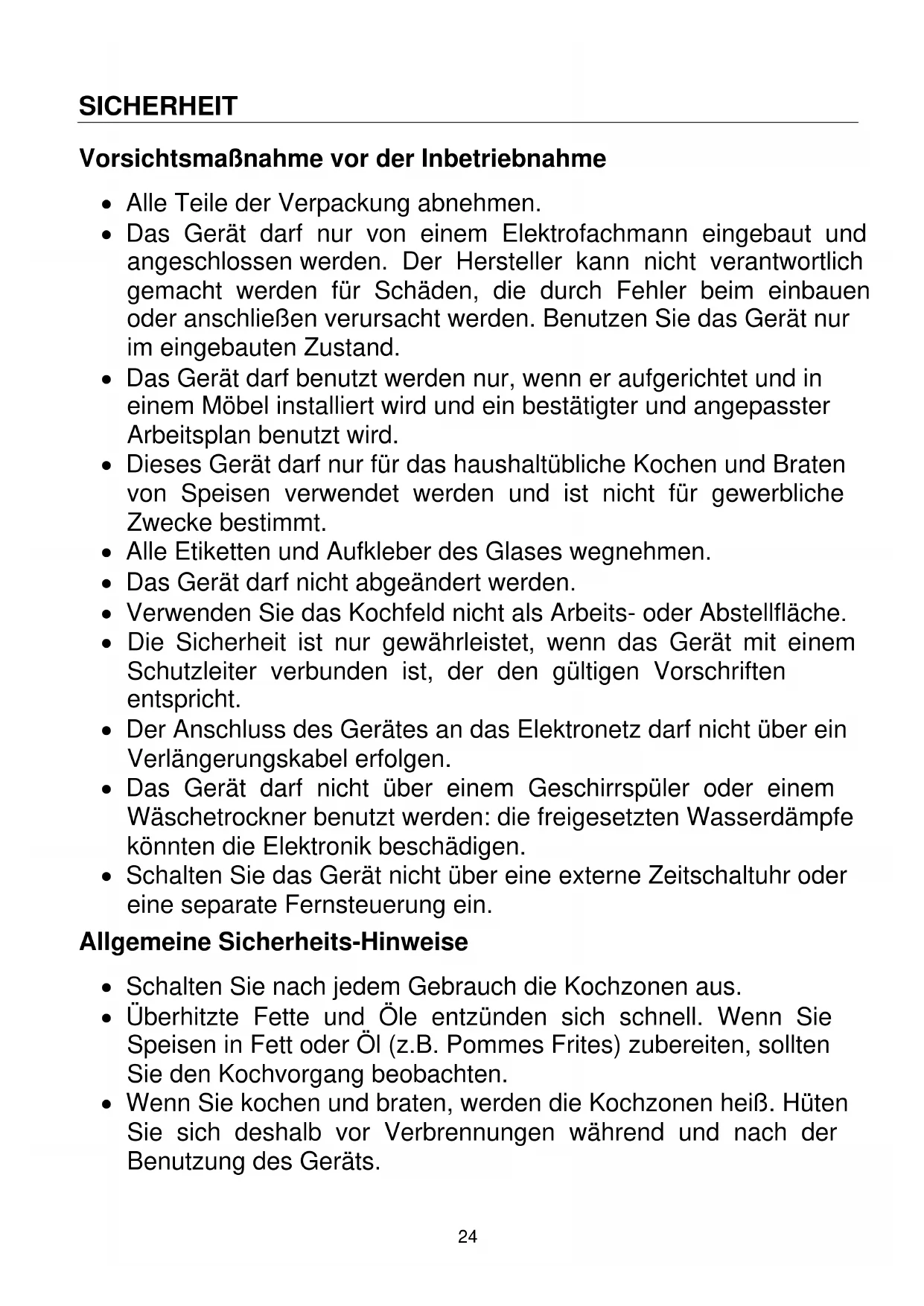 ALLGEMEINE SICHERHEITS-HINWEISE 24