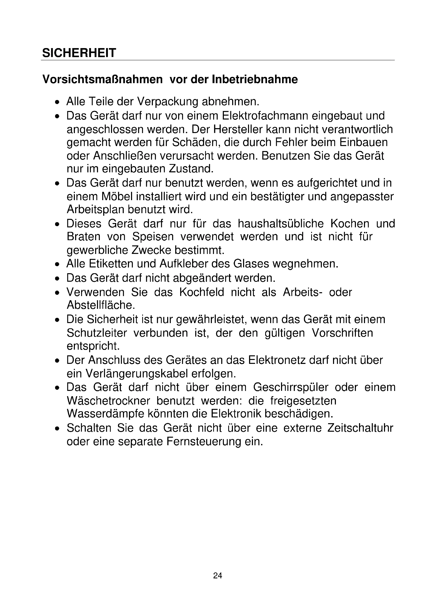 - VORSICHTSMAßNAHMEN VOR DER INBETRIEBNAHME p. 24