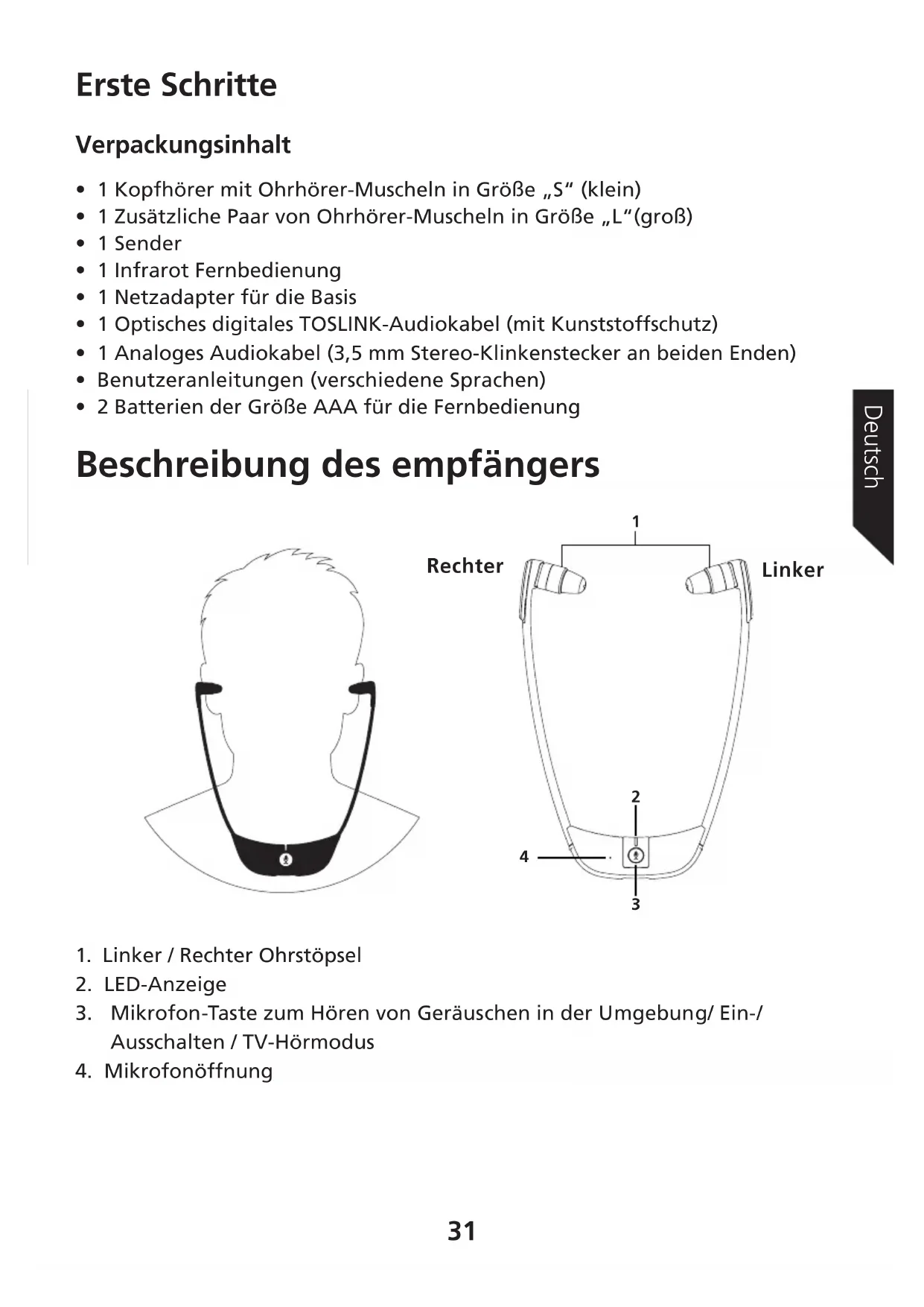 1. Linker / Rechter Ohrstöpsel
