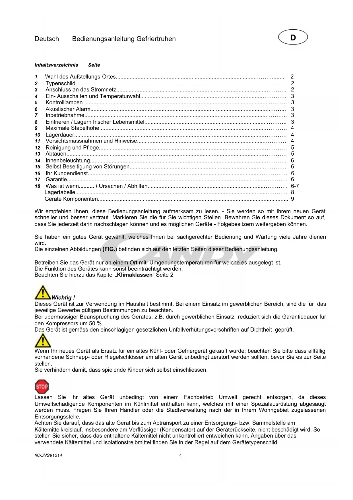 SLODeutsch Bedienungsanleitung Gefriertruhen fiCONS91214