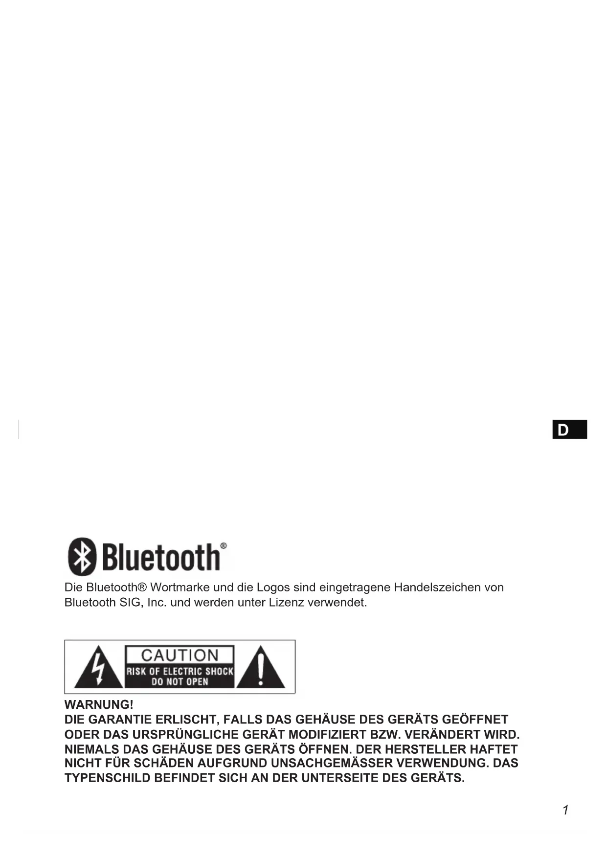 Die Bluetooth® Wortmarke und die Logos sind eingetragene Handelszeichen von Bluetooth SIG, Inc. und werden unter Lizenz verwendet. WARNUNG! DIE GARANTIE ERLISCHT, FALLS DAS GEHÄUSE DES GERÄTS GEÖFFNET ODER DAS URSPRÜNGLICHE GERÄT MODIFIZIERT BZW. VERÄNDERT WIRD. NIEMALS DAS GEHÄUSE DES GERÄTS ÖFFNEN. DER HERSTELLER HAFTET NICHT FÜR SCHÄDEN AUFGRUND UNSACHGEMÄSSER VERWENDUNG. DAS TYPENSCHILD BEFINDET SICH AN DER UNTERSEITE DES GERÄTS.2 TASTEN Tastenübersicht