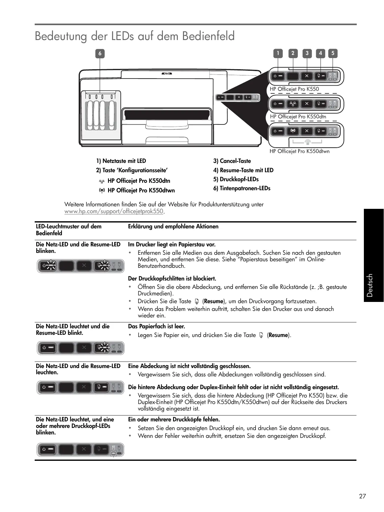Weitere Informationen finden Sie auf der Website für Produktunterstützung unter www.hp.com/support/officejetprok550.
