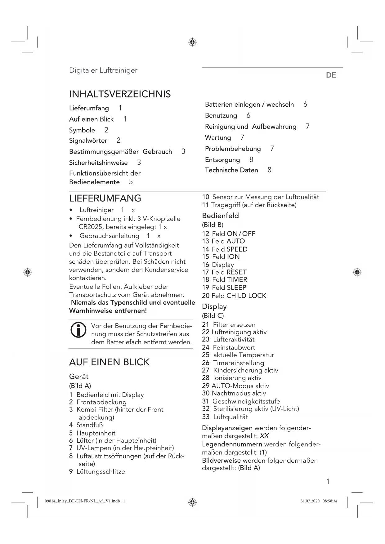 ID Gebrauchsanleitung: Z 09814 M DS V1 0720 dk