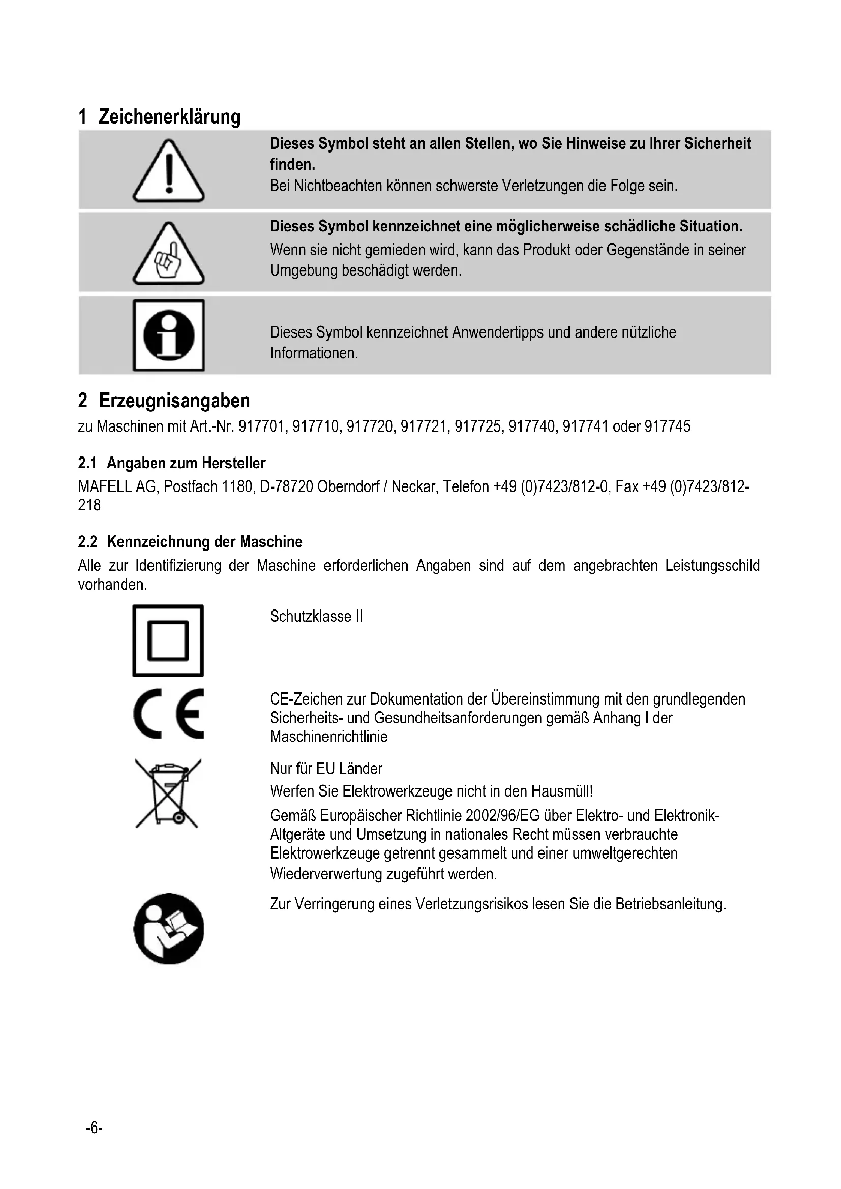 2.2 Kennzeichnung der Maschine 6