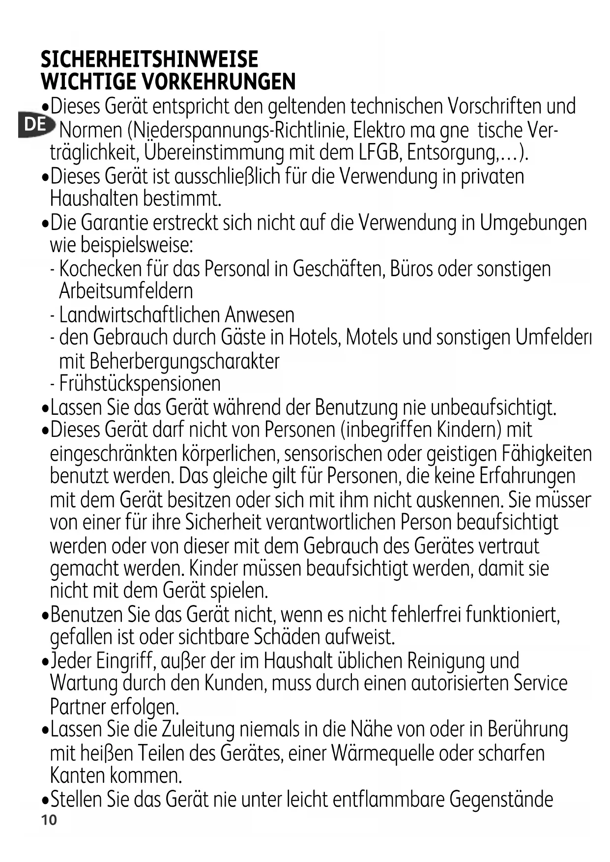 - Dieses Gerät ist ausschließlich für die Verwendung in privaten Haushalten bestimmt.