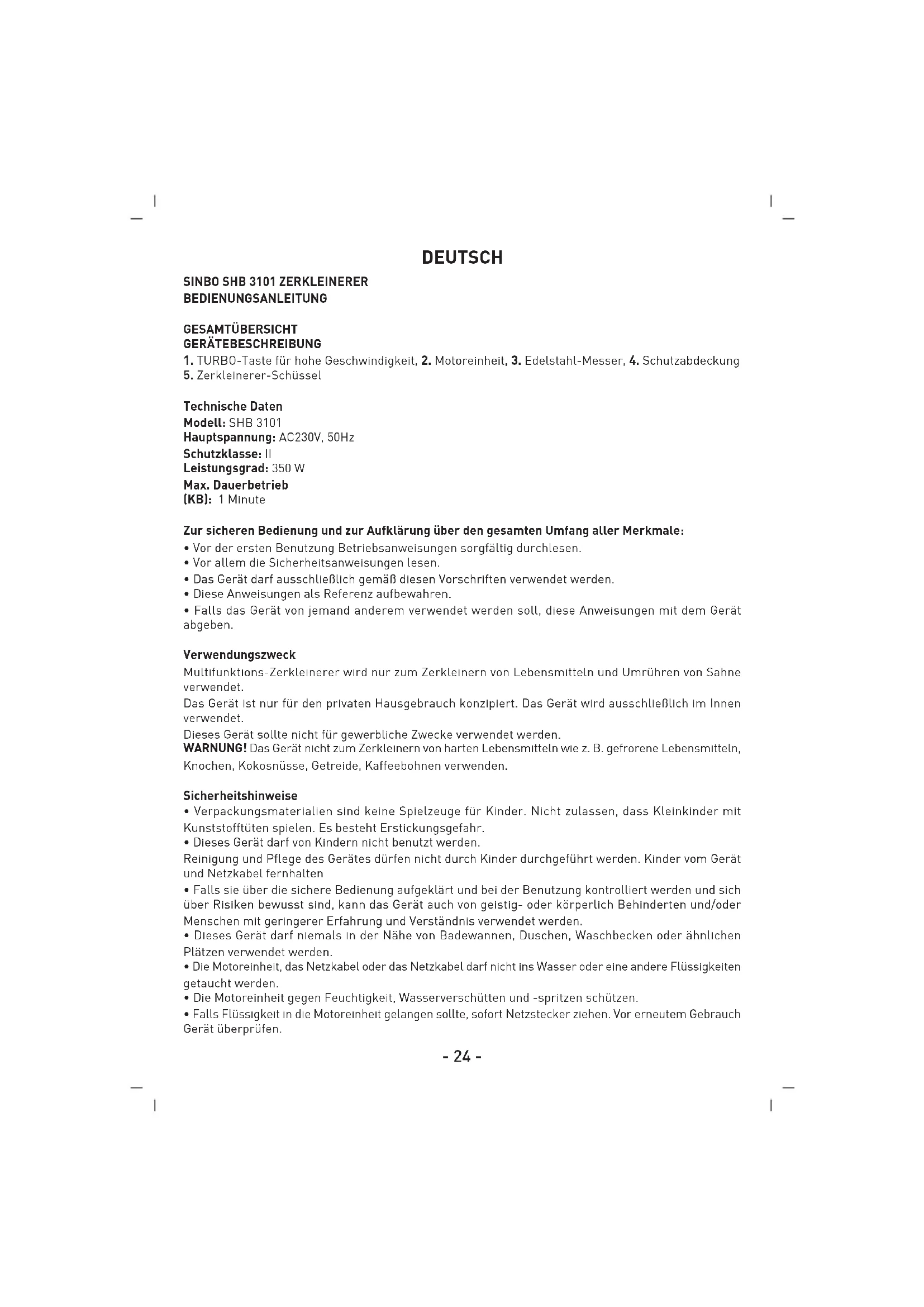 BEDIENUNGSANLEITUNG SHB 3101 SINBO