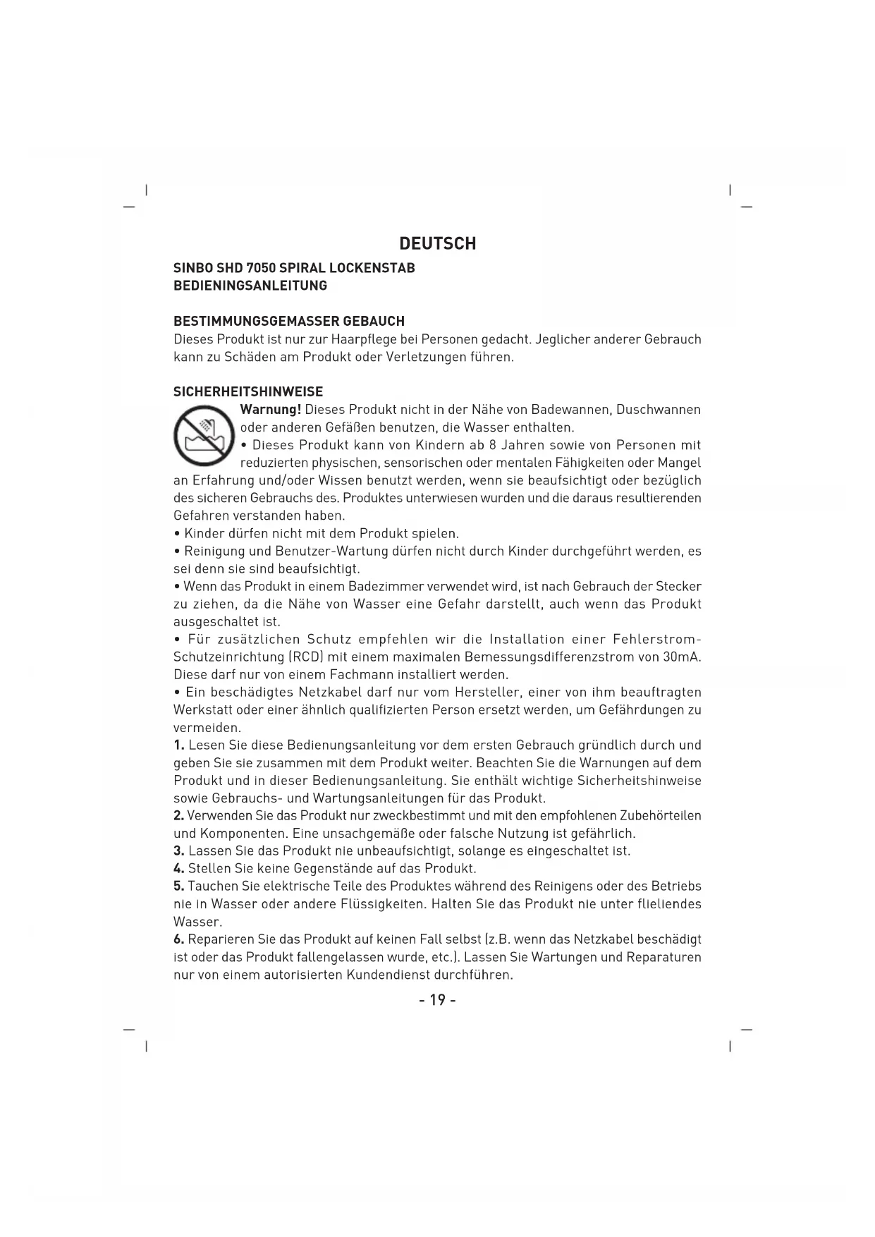 SHD 7050 - Lockenstab SINBO - Kostenlose Bedienungsanleitung