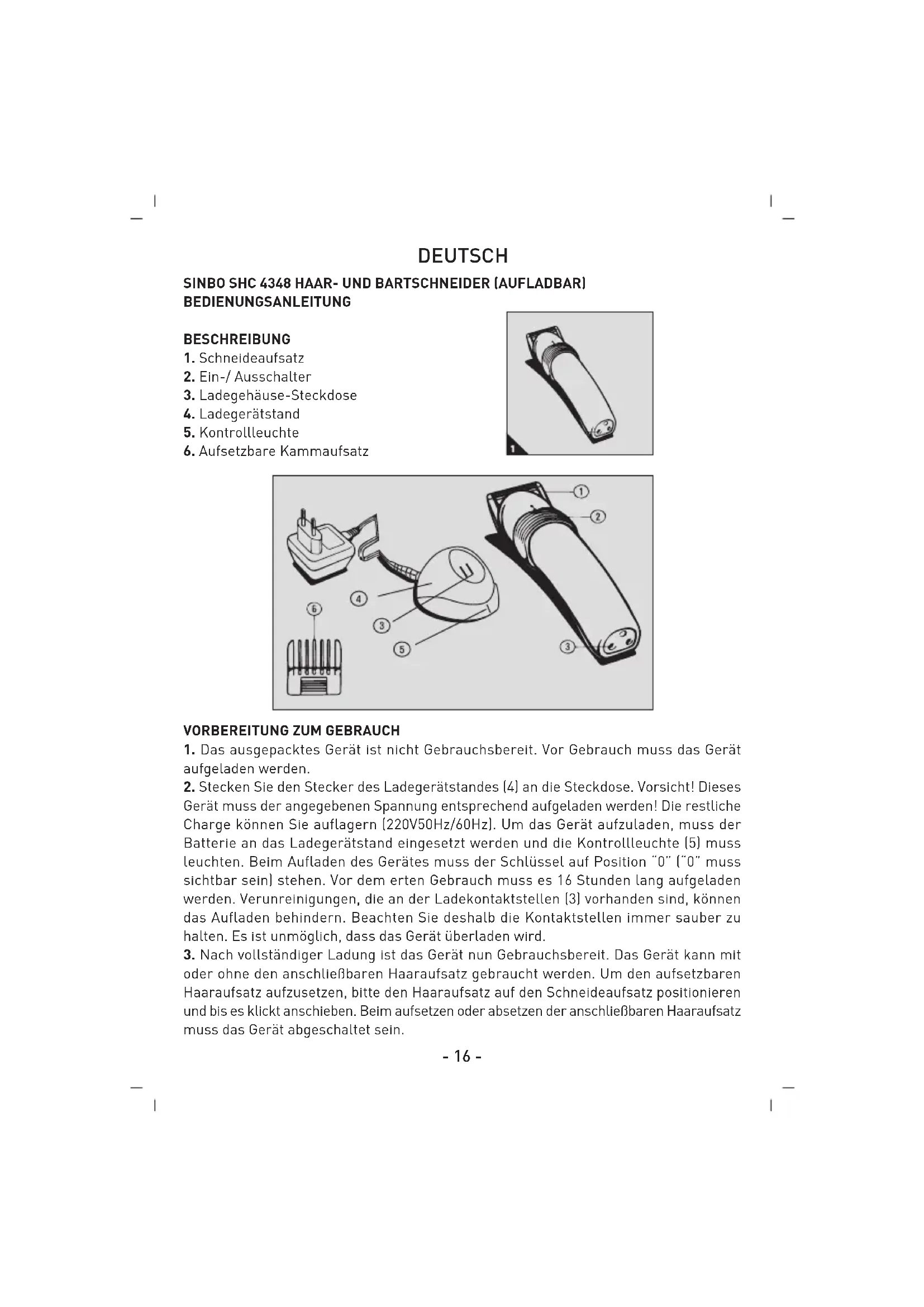 SHC 4348 - Bartschneider SINBO - Kostenlose Bedienungsanleitung