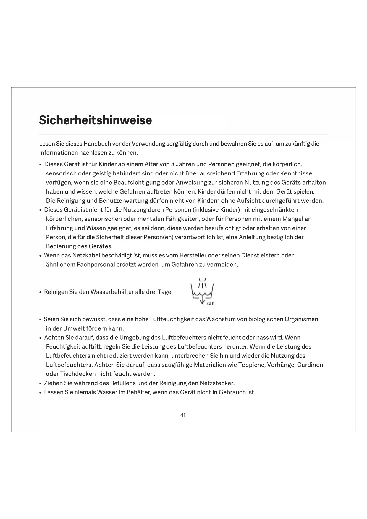 Sicherheitshinweise• Entleeren und reinigen Sie den Lubefeuchter vor der Lagerung. Reinigen Sie den Lubefeuchter vor dem nächsten Gebrauch.