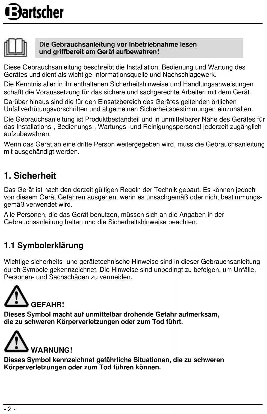 Die Gebrauchsanleitung vor Inbetriebnahme lesen und griffbereit am Gerät aufbewahren!