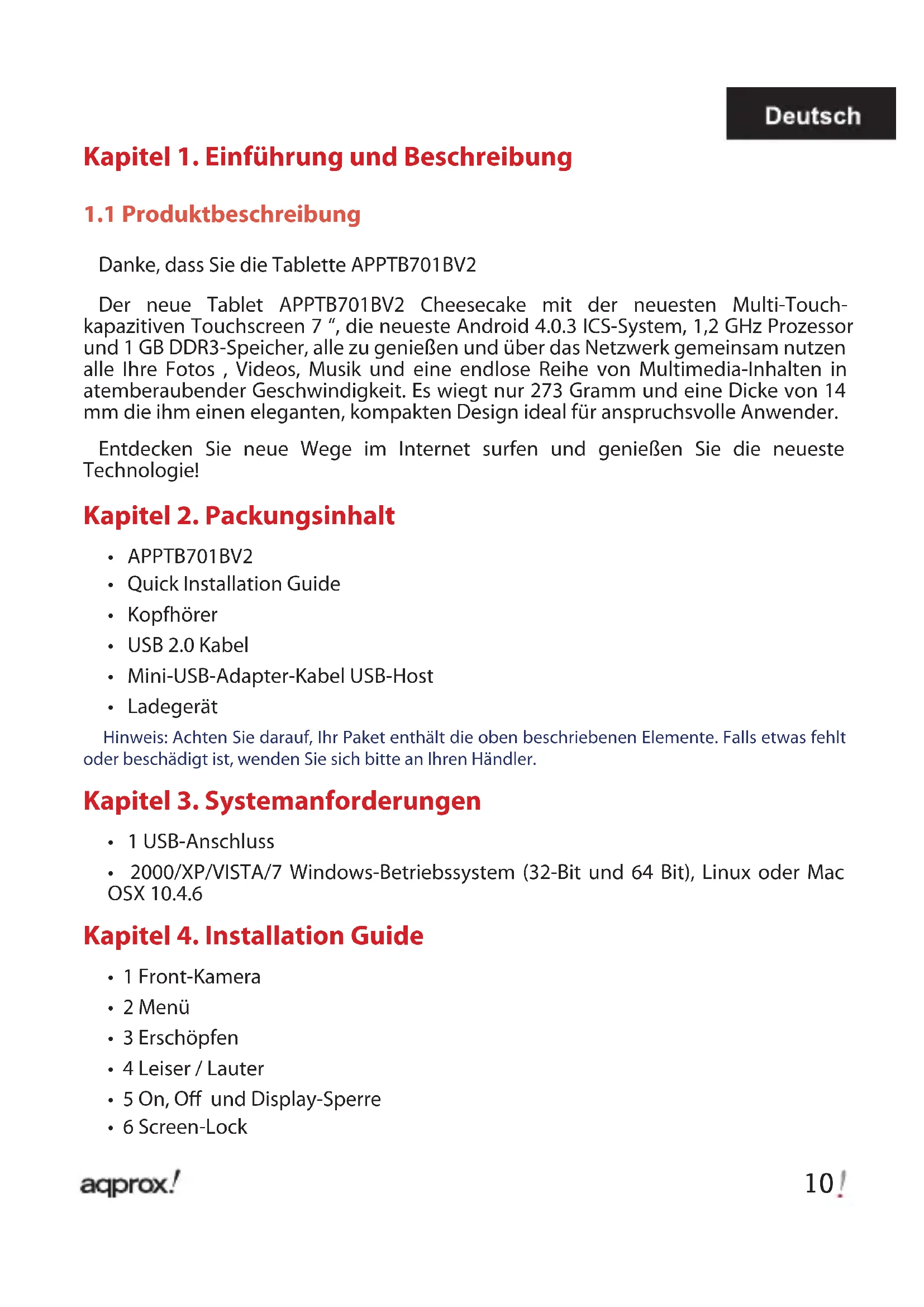 appTB701BV2 - Tablet Aqprox - Kostenlose Bedienungsanleitung