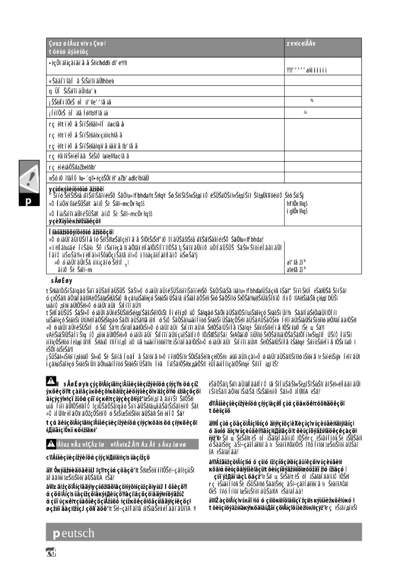 Deutsch SYMBOLE ACHTUNG! WARNUNG! GEFAHR! Vor allen Arbeiten an der Maschine den Stecker aus der Steckdose ziehen. Bitte lesen Sie die Gebrauchsanweisung vor Inbetriebnahme sorgfältig durch. Zubehör - Im Lieferumfang nicht enthalten, empfohlene Ergänzung aus dem Zubehörprogramm. Elektrogeräte dürfen nicht zusammen mit dem Hausmüll entsorgt werden. Elektrische und elektronische Geräte sind getrennt zu sammeln und zur umweltgerechten Entsorgung bei einem Verwertungsbetrieb abzugeben. Erkundigen Sie sich bei den örtlichen Behörden oder bei Ihrem Fachhändler nach Recyclinghöfen und Sammel- stellen. Elektrowerkzeug der Schutzklasse II. Elektrowerkzeug, bei dem der Schutz vor einem elektrischen Schlag nicht nur von der Basisisolierung abhängt, sondern auch davon, dass zusätzliche Schutzmaßnahmen, wie doppelte Isolierung oder verstärkte Isolierung, angewendet werden. Es gibt keine Vorrichtung zum Anschluss eines Schutzleiters. Europäisches Konformitätszeichen Britisches Konformitätszeichen Ukrainisches Konformitätszeichen Euroasiatisches Konformitätszeichen