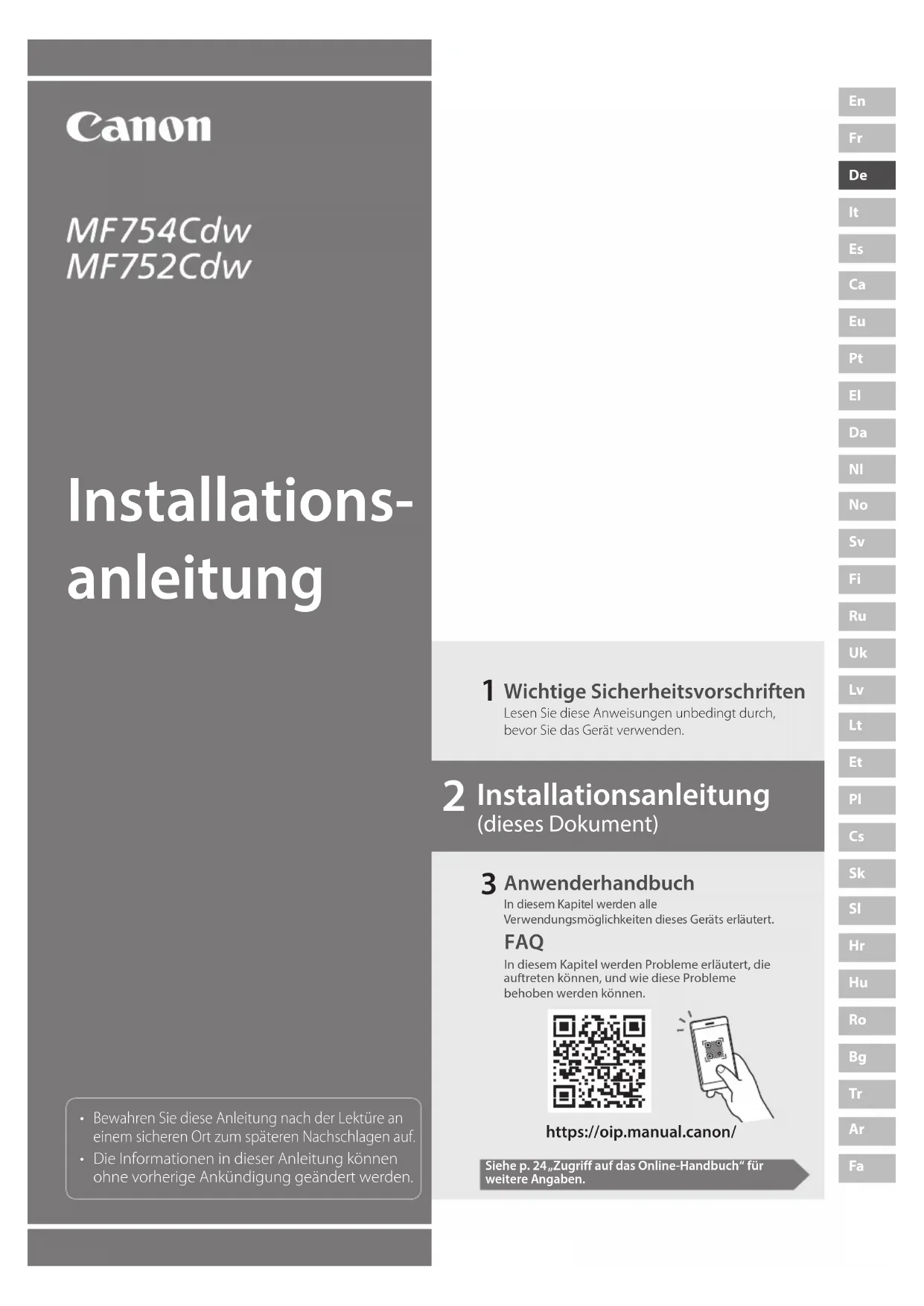 Installationsanleitung (dieses Dokument) Installations- anleitung https://oip.manual.canon/