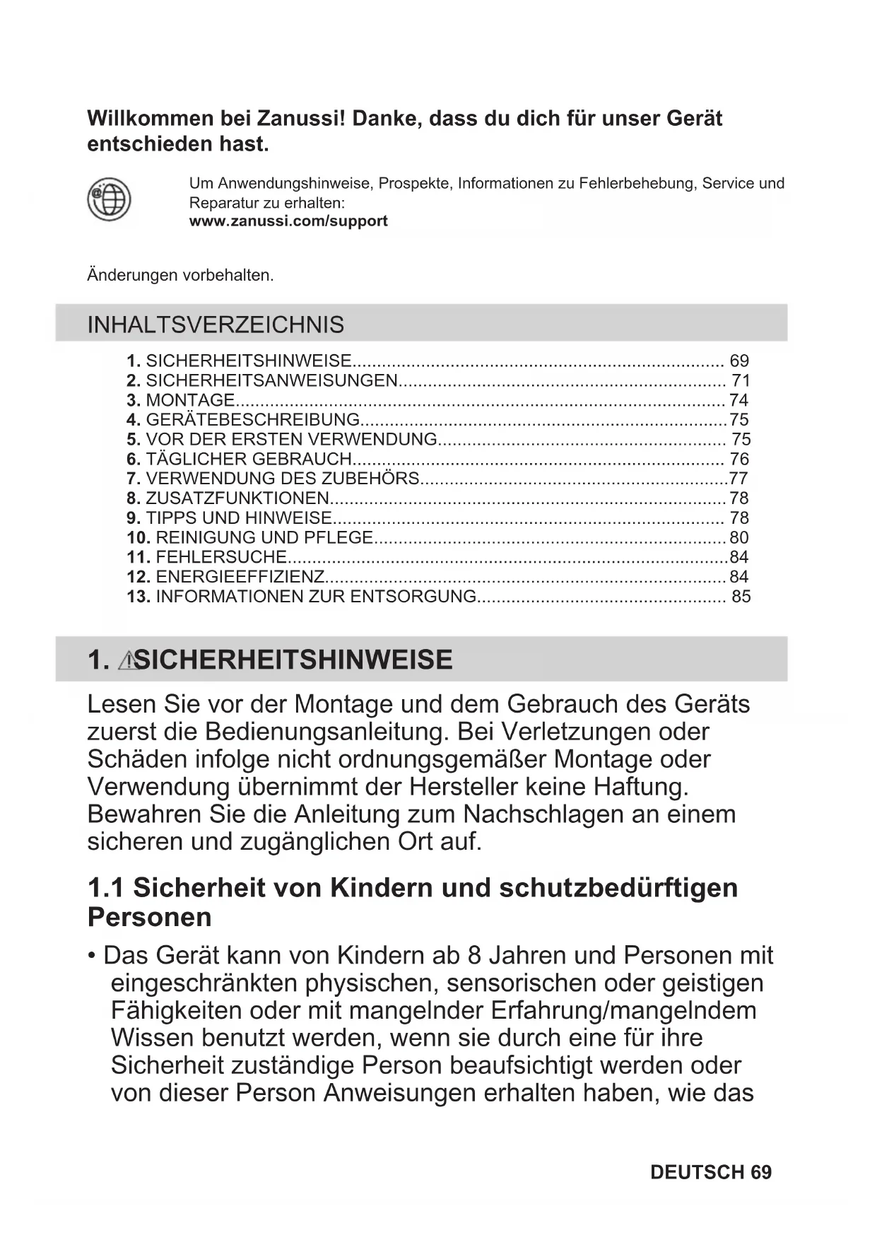 - SICHERHEITSHINWEISE 69
