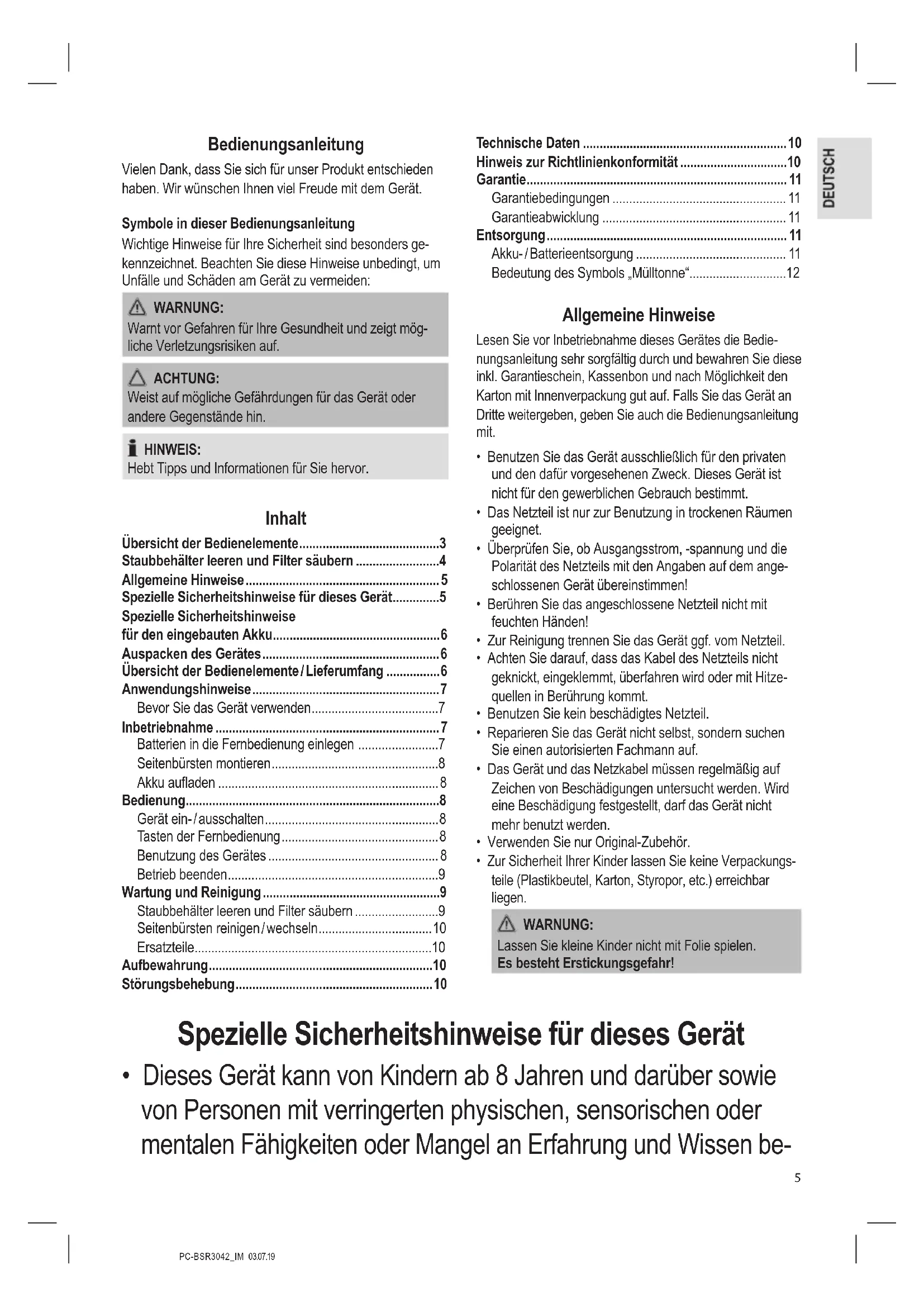 BEDIENUNGSANLEITUNG PCBSR 3042 ProfiCare