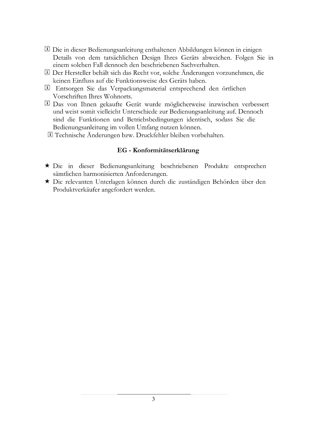 Der Hersteller besteht sich das Recht vor, solche Änderungen vorzunehmen, die keinen Einfluss auf die Funktionseiste des Gcrats haben.