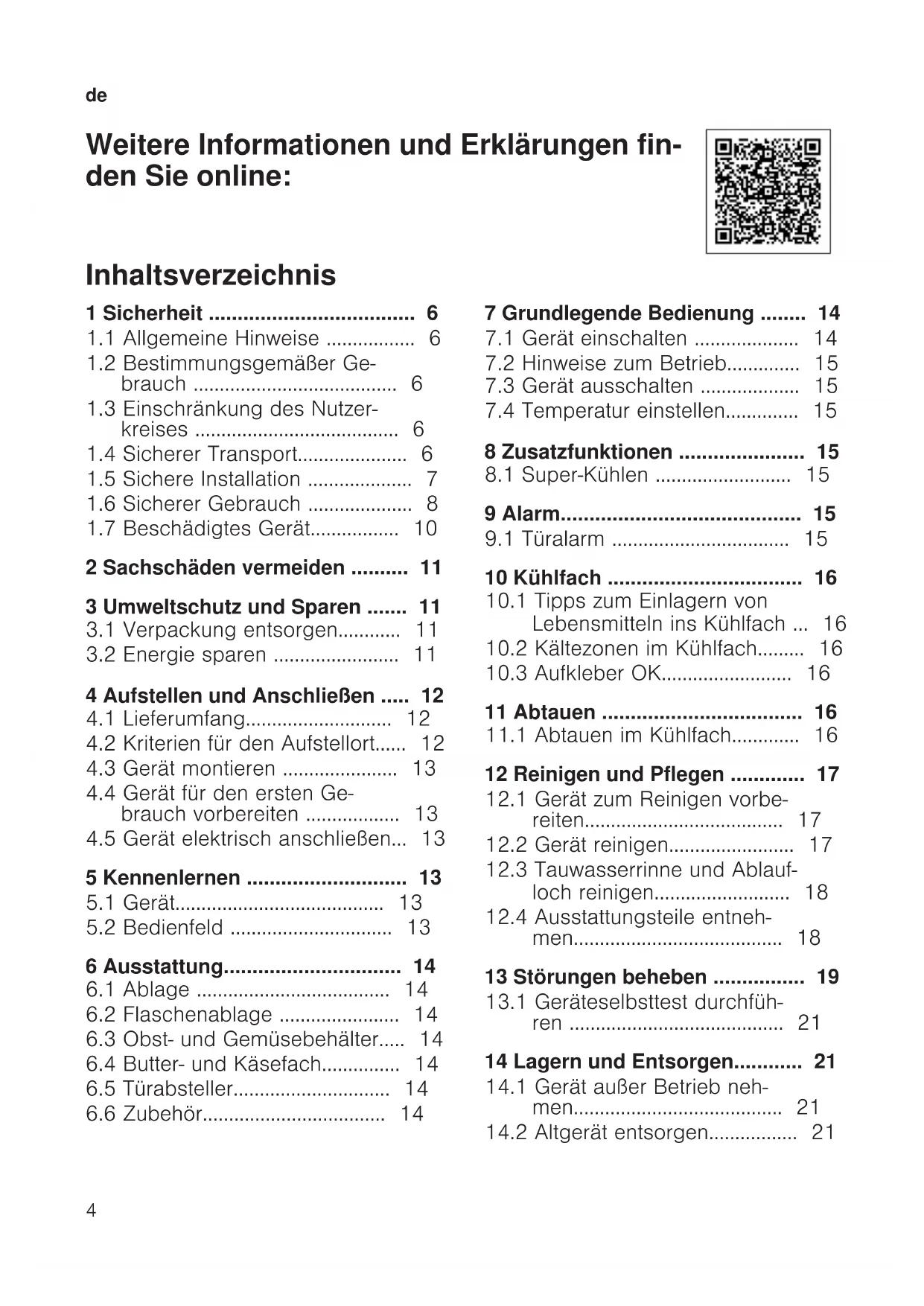 Weitere Informationen und Erklärungen fin- den Sie online: Inhaltsverzeichnis 1 Sicherheit ....................................6