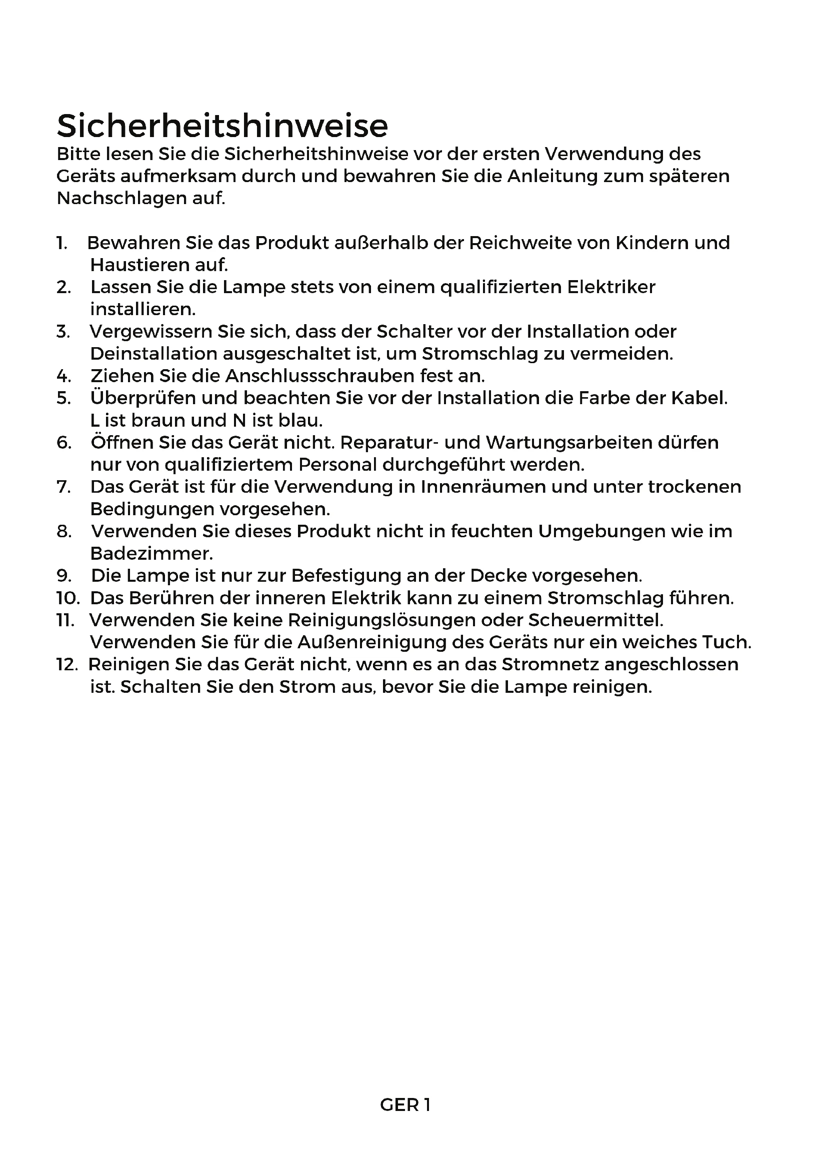 9. Die Lampe ist nur zur Befestigung an der Decke vorgesehen.