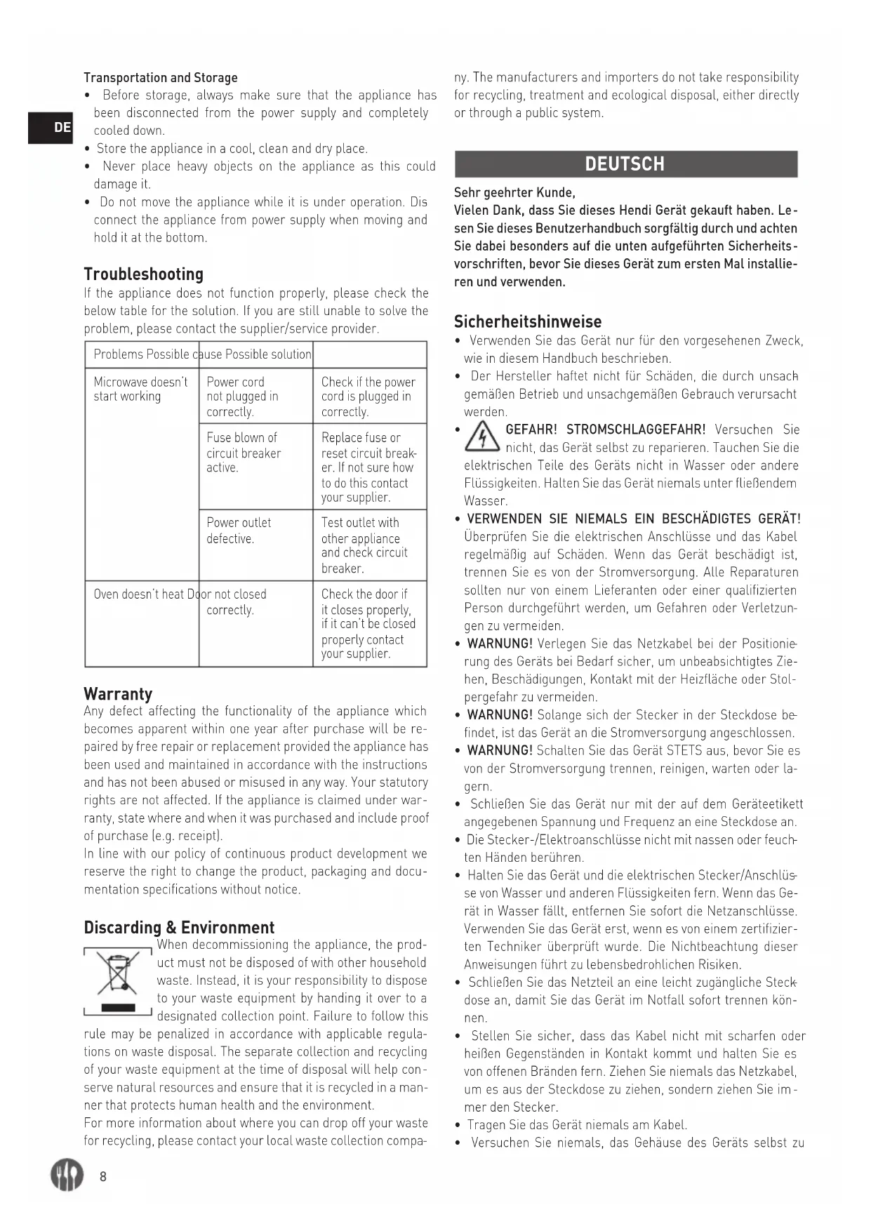 281352 - Mikrowelle Hendi - Kostenlose Bedienungsanleitung