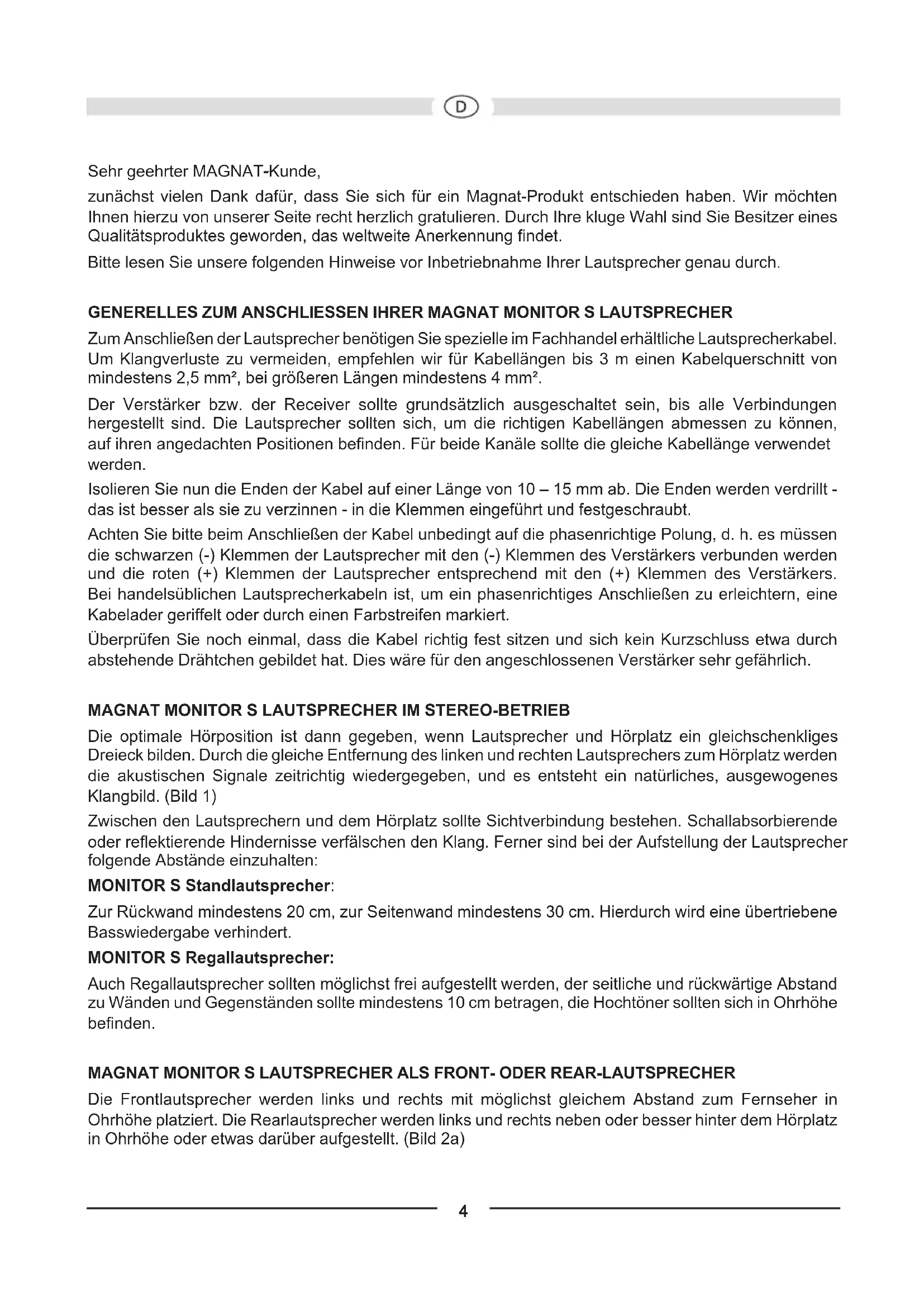 Monitor S 10 D - Lautsprecher MAGNAT - Kostenlose Bedienungsanleitung