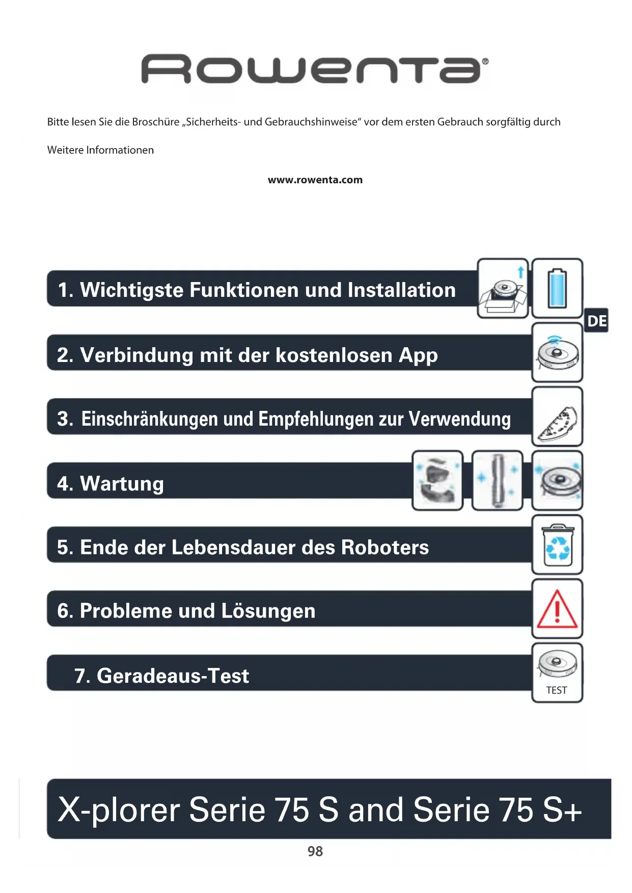 www.rowenta.com Bitte lesen Sie die Broschüre „Sicherheits- und Gebrauchshinweise“ vor dem ersten Gebrauch sorgfältig durch Weitere Informationen X-plorer Serie 75 S and Serie 75 S+