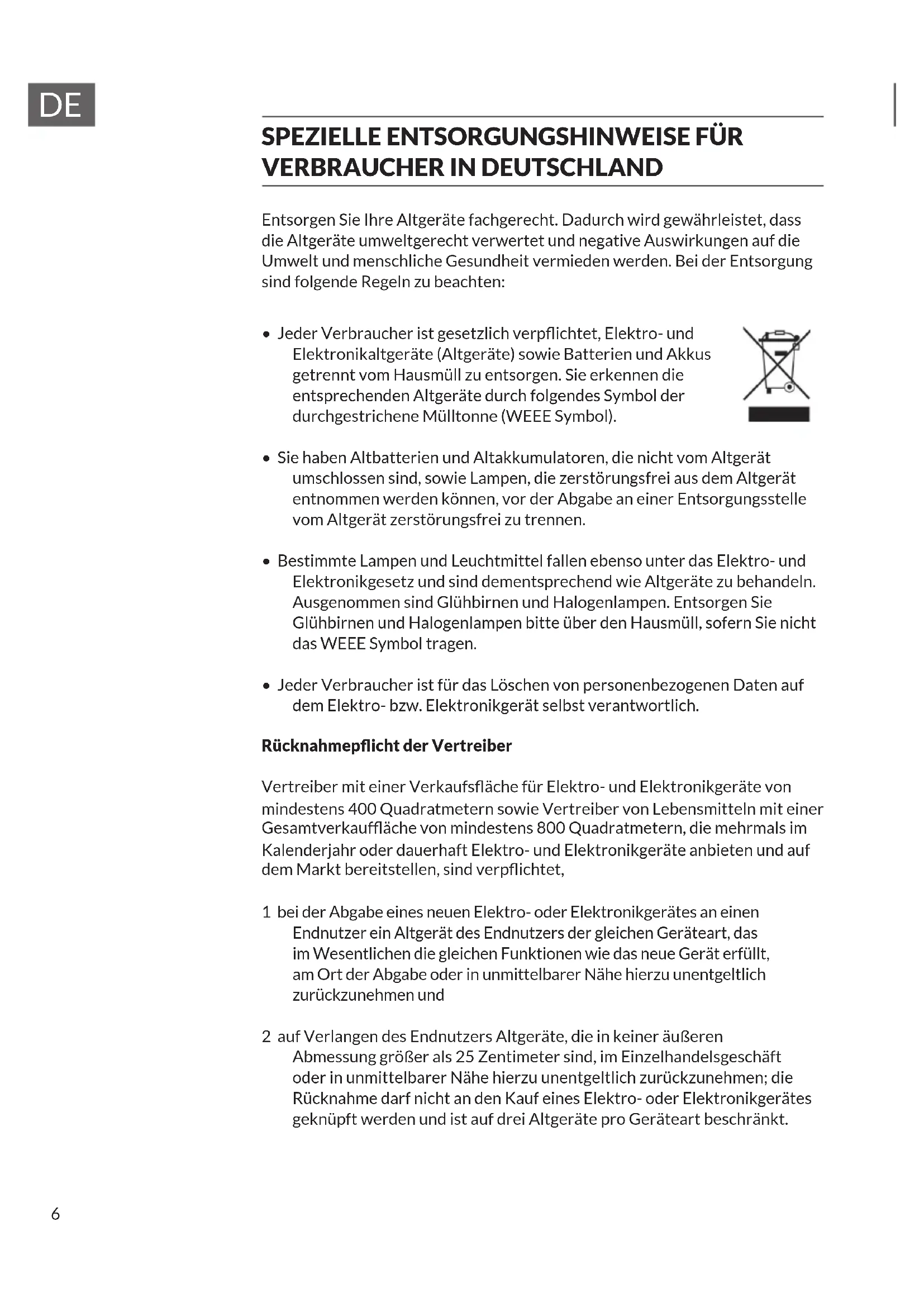 SPEZIELLE ENTSORGUNGSHINWEISE FÜR VERBRAucher IN DEUTSCHLAND