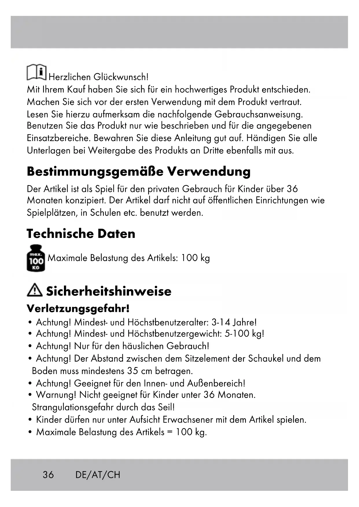 - Maximale Belastung des Artikels = 100 kg. DE/AT/CH37