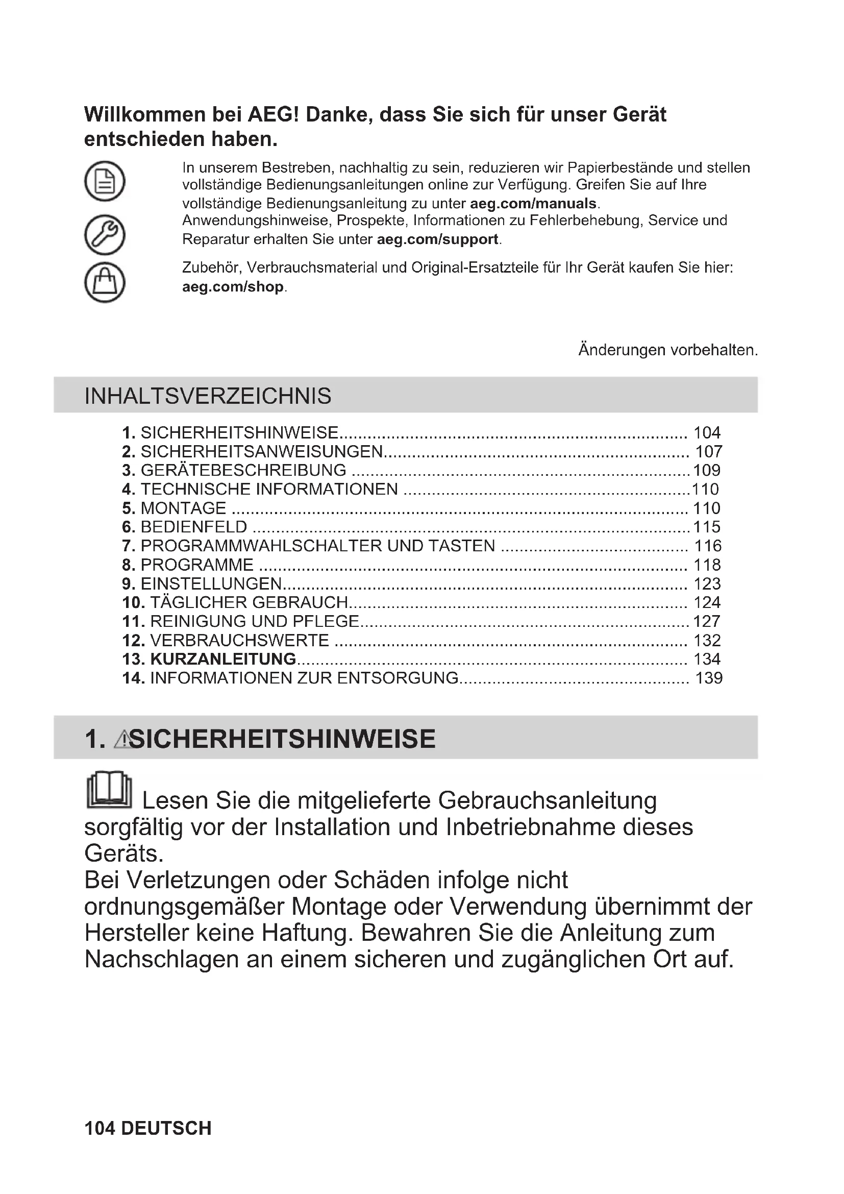 - Erhalten Sie Informationen zur Nutzung, Fehlerbehebung, Wartung und Reparatur (auch verfügbar un ter aeg.com/support).