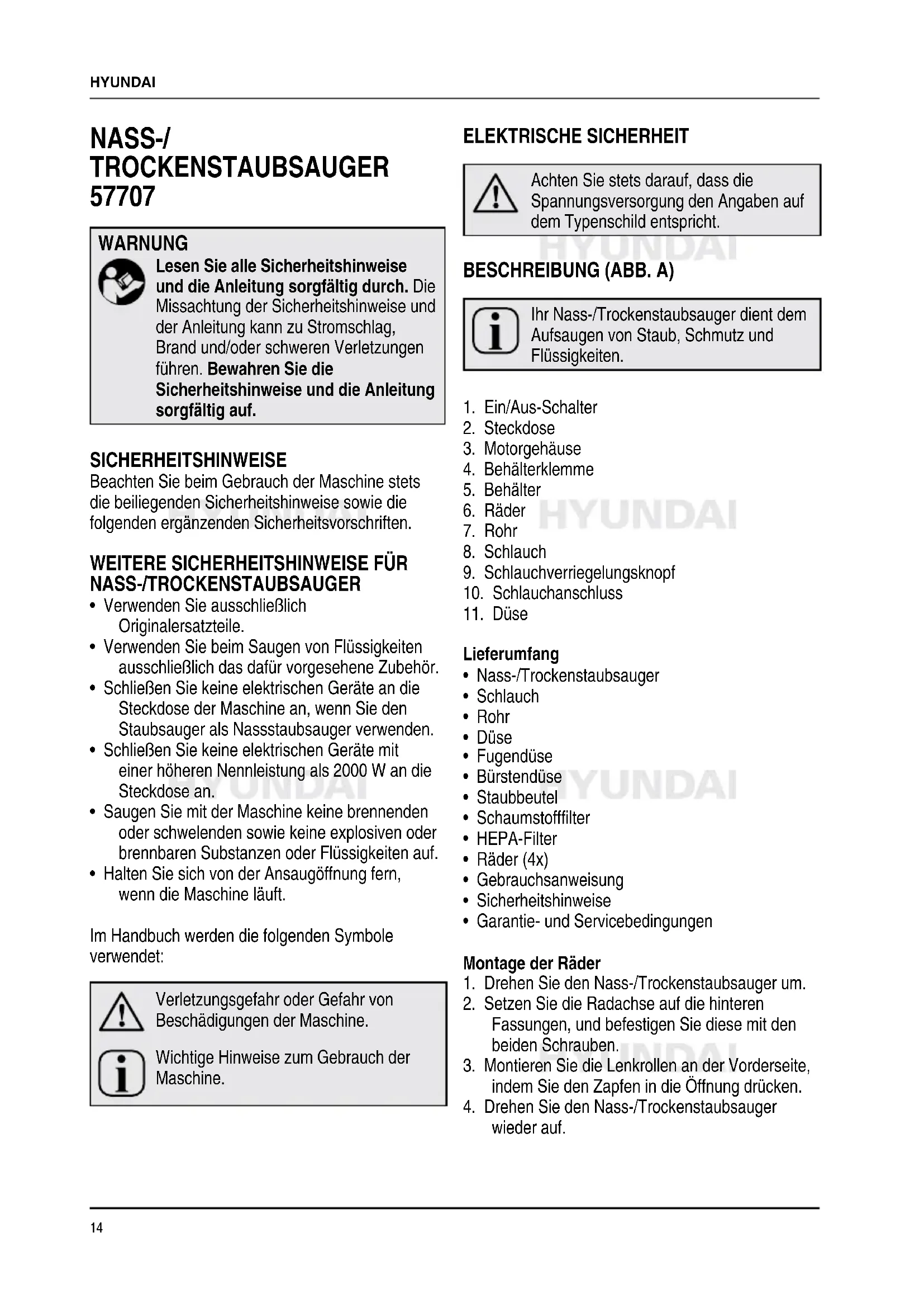 57707 - Staubsauger HYUNDAI - Kostenlose Bedienungsanleitung
