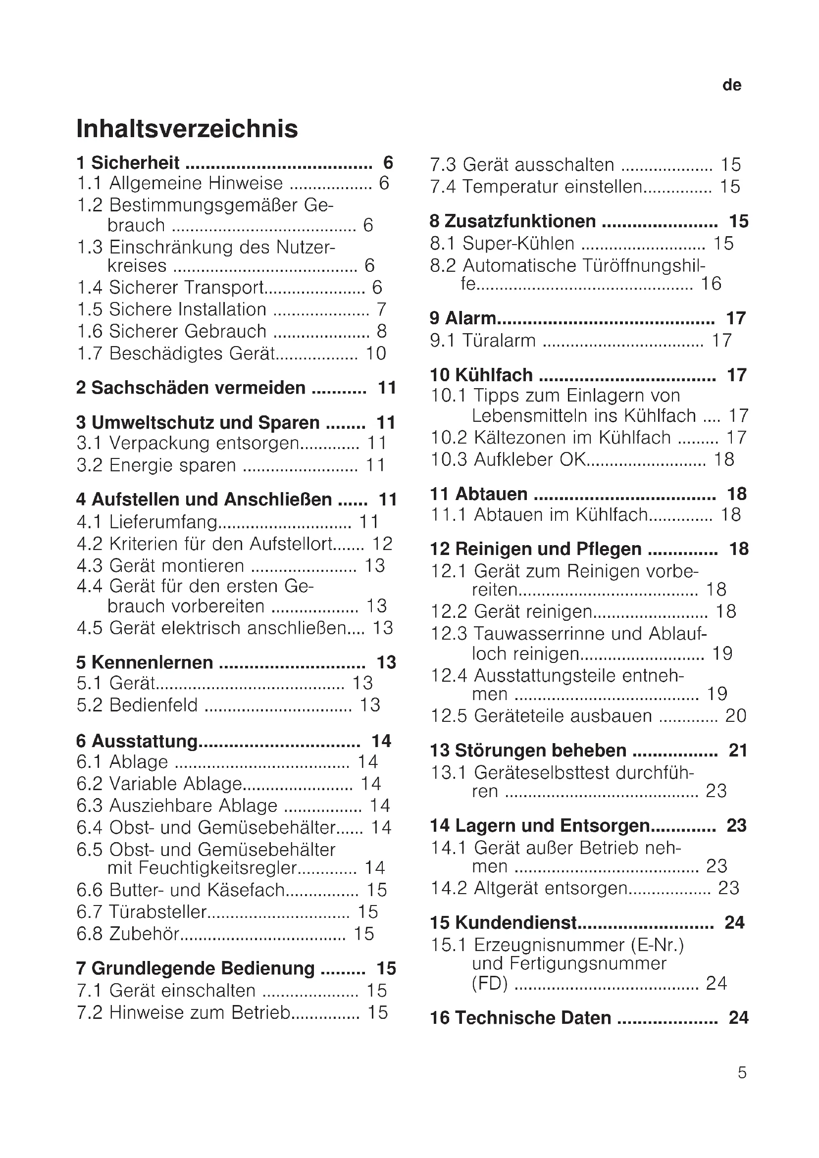 und Fertigungsnummer (FD) ........................................24 16 Technische Daten ....................24de Sicherheit