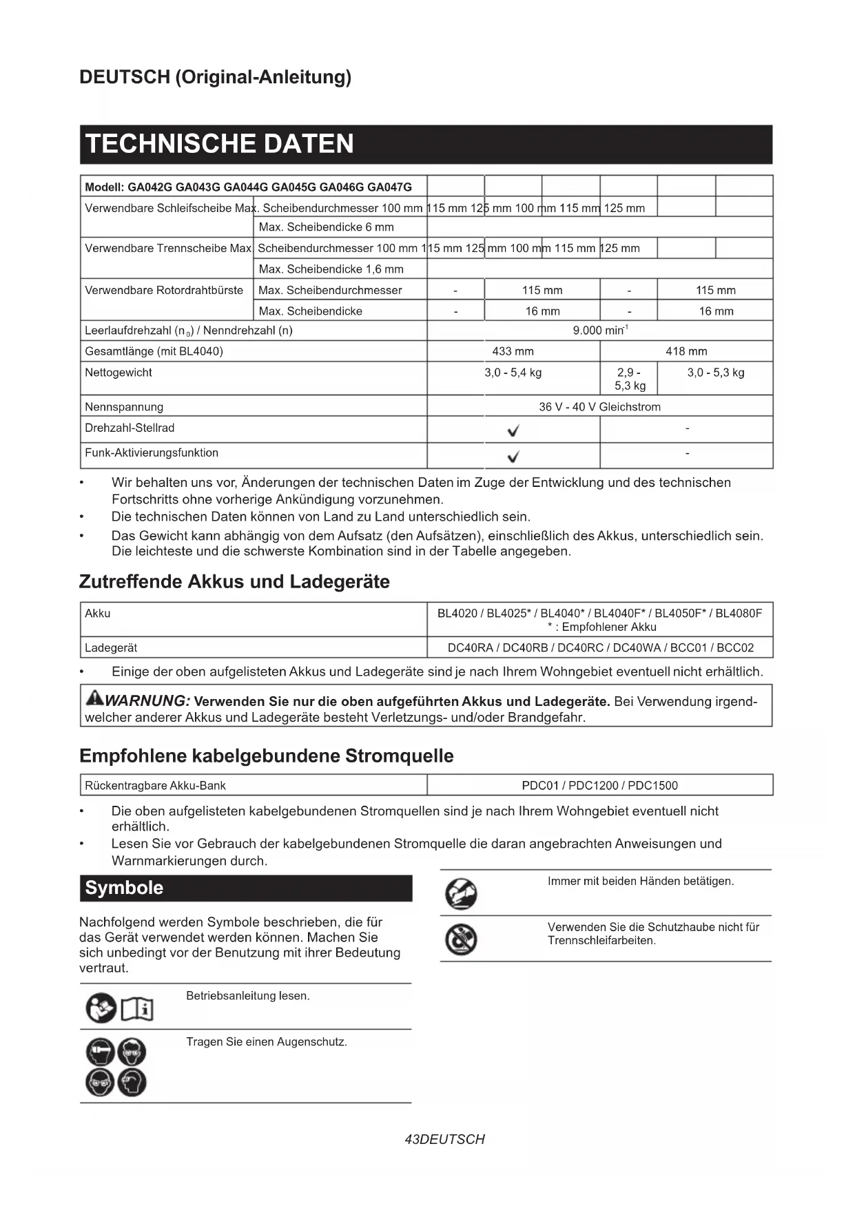 Akku-Winkelschleifer BETRIEBSANLEITUNG 43