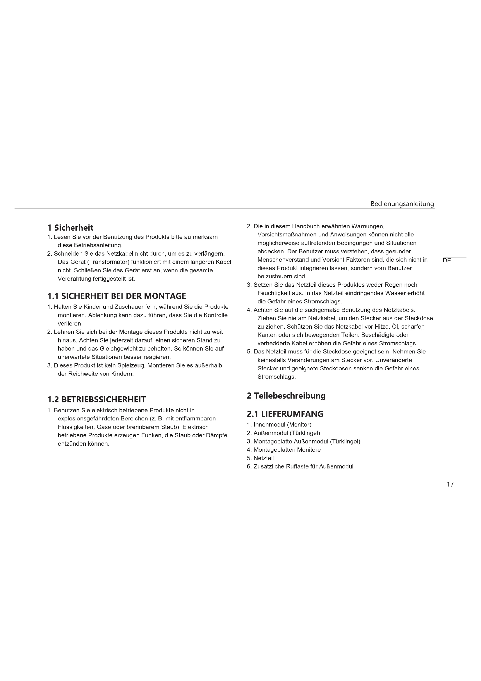 1.1 SICHERHEIT BEI DER MONTAGE