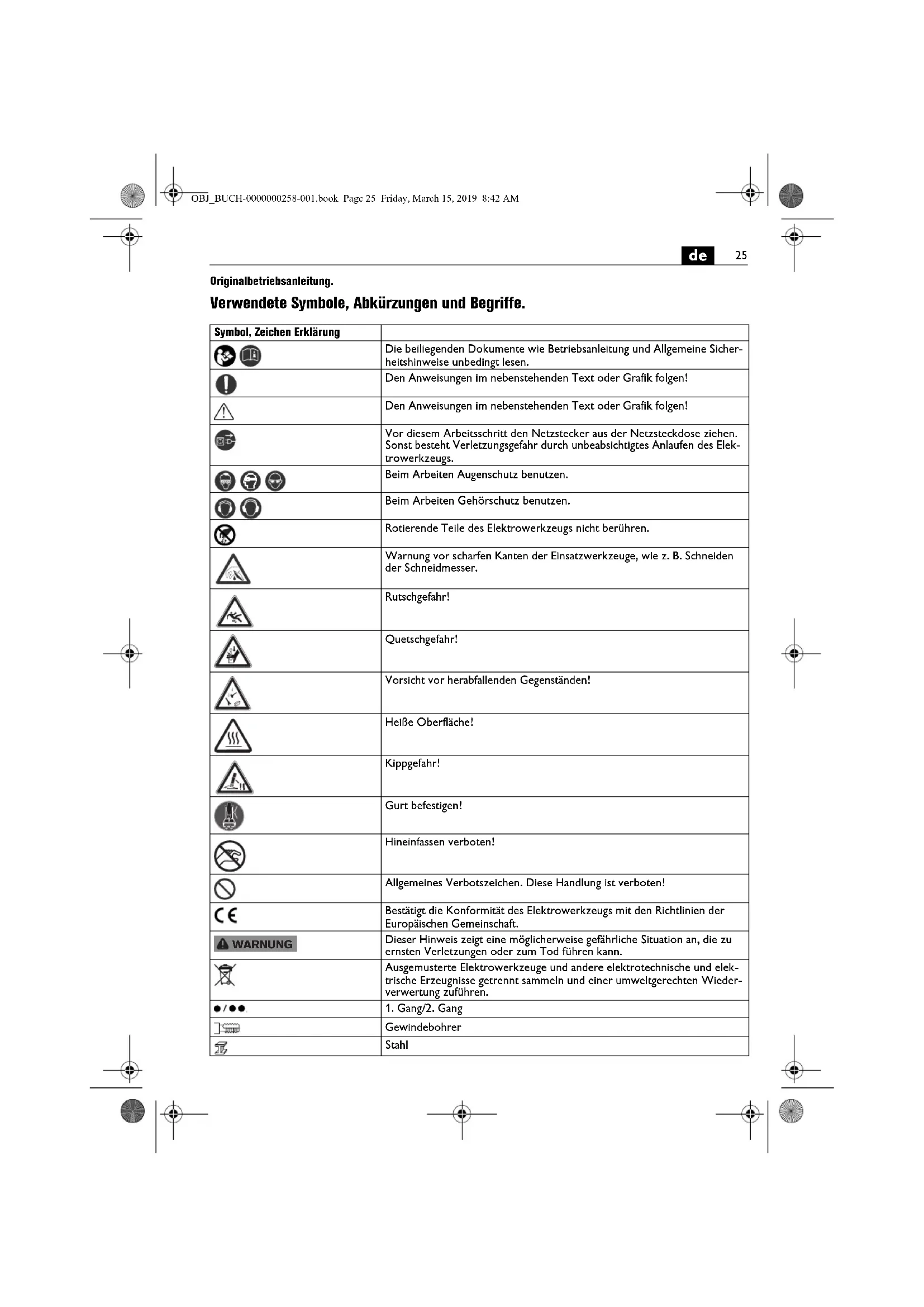 | Symbol, Zeichen Erklärung | |