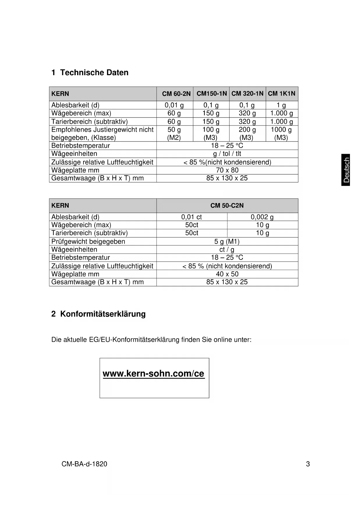 Im Rahmen der Qualitätssicherung müssen die messtechnischen Eigenschaften der Waage und eines eventuell vorhandenen Prüfgewichtes in regelmäßigen Abständen überprüft werden. Der verantwortliche Benutzer hat hierfür ein geeignetes Intervall sowie die Art und den Umfang dieser Prüfung zu definieren. Informationen bezüglich der Prüfmittelüberwachung von Waagen sowie die hierfür notwendigen Prüfgewichte sind auf der KERN-Hompage (www.kern-sohn.com) verfügbar. In seinem akkreditier- tem DKD-Kalibrierlaboratorium können bei KERN schnell und kostengünstig Prüfge- wichte und Waagen kalibriert werden (Rückführung auf das nationale Normal).CM-BA-d-1820