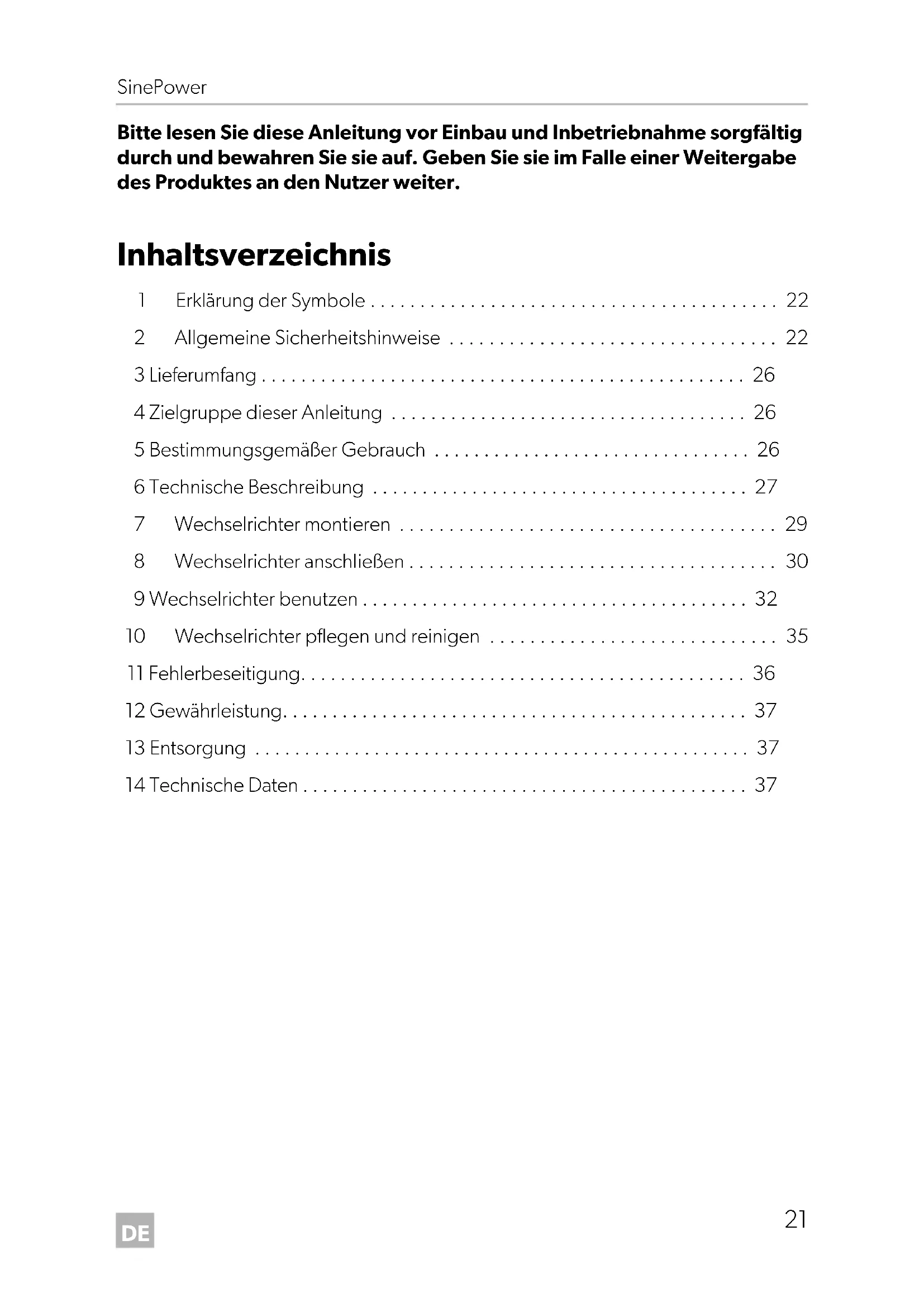 - 14 Technische Daten DSP600-2000--IO-16s.book Seite 21 Montag, 7. Mai 2018 1:39 13DE Erklärung der Symbole SinePower p. 37
