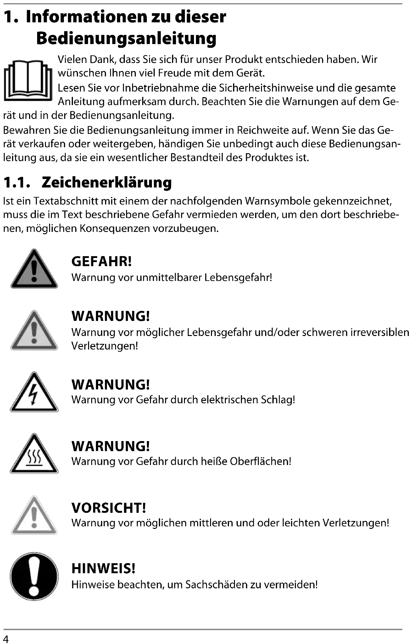 1. Informationen zu dieser Bedienungsanleitung ........................................ 4