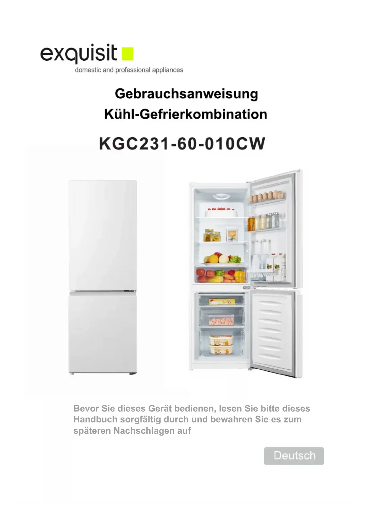 Laden Sie die Anleitung für Ihr Kühlschrank kostenlos im PDF-Format! Finden Sie Ihr Handbuch KGC23160010CW - Exquisit und nehmen Sie Ihr elektronisches Gerät wieder in die Hand. Auf dieser Seite sind alle Dokumente veröffentlicht, die für die Verwendung Ihres Geräts notwendig sind. KGC23160010CW von der Marke Exquisit.