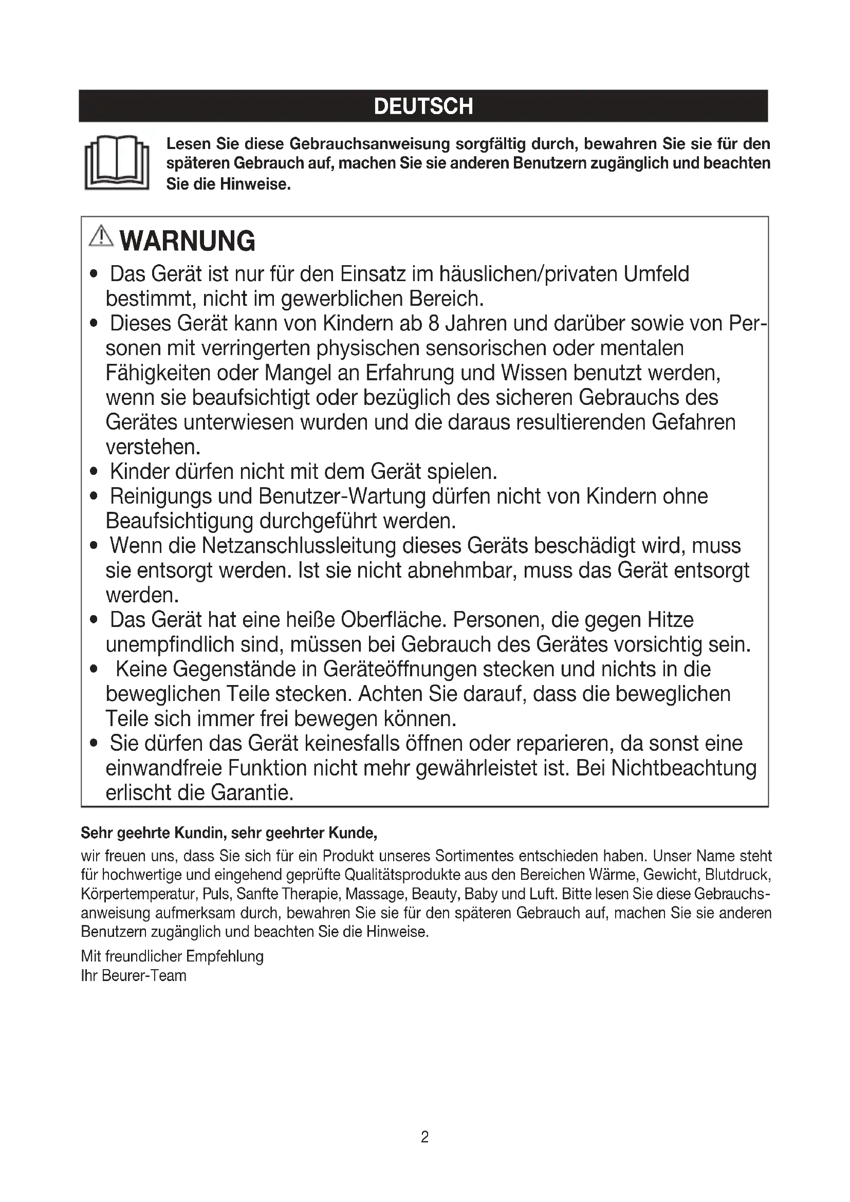 Beurer garantiert die mangelfrei Funktionstüchtigkeit und die Vollständigkeit这点es Produktes.