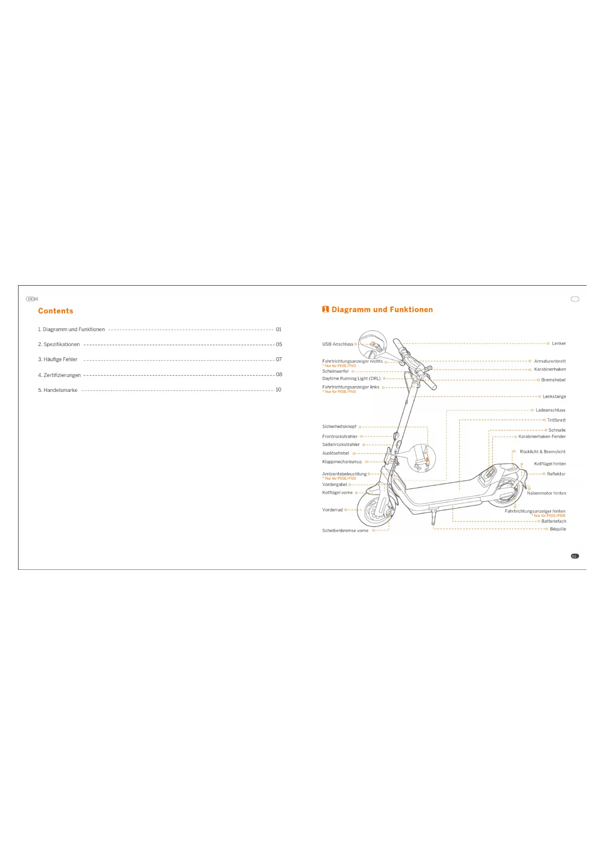 - Nur für P65E/P65I Rücklicht & Bremslicht Reflektor USB-Anschluss Diagramm und Funktionen Contents