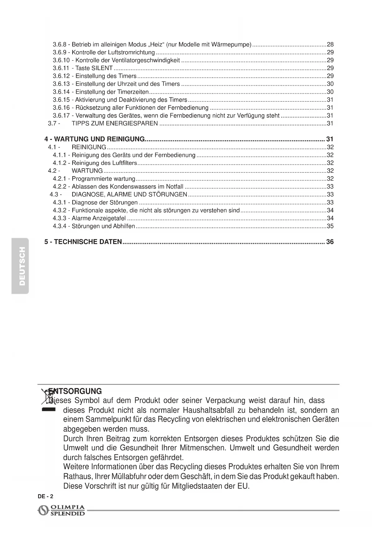 - 4 - WARTUNG UND REINIGUNG p. 31