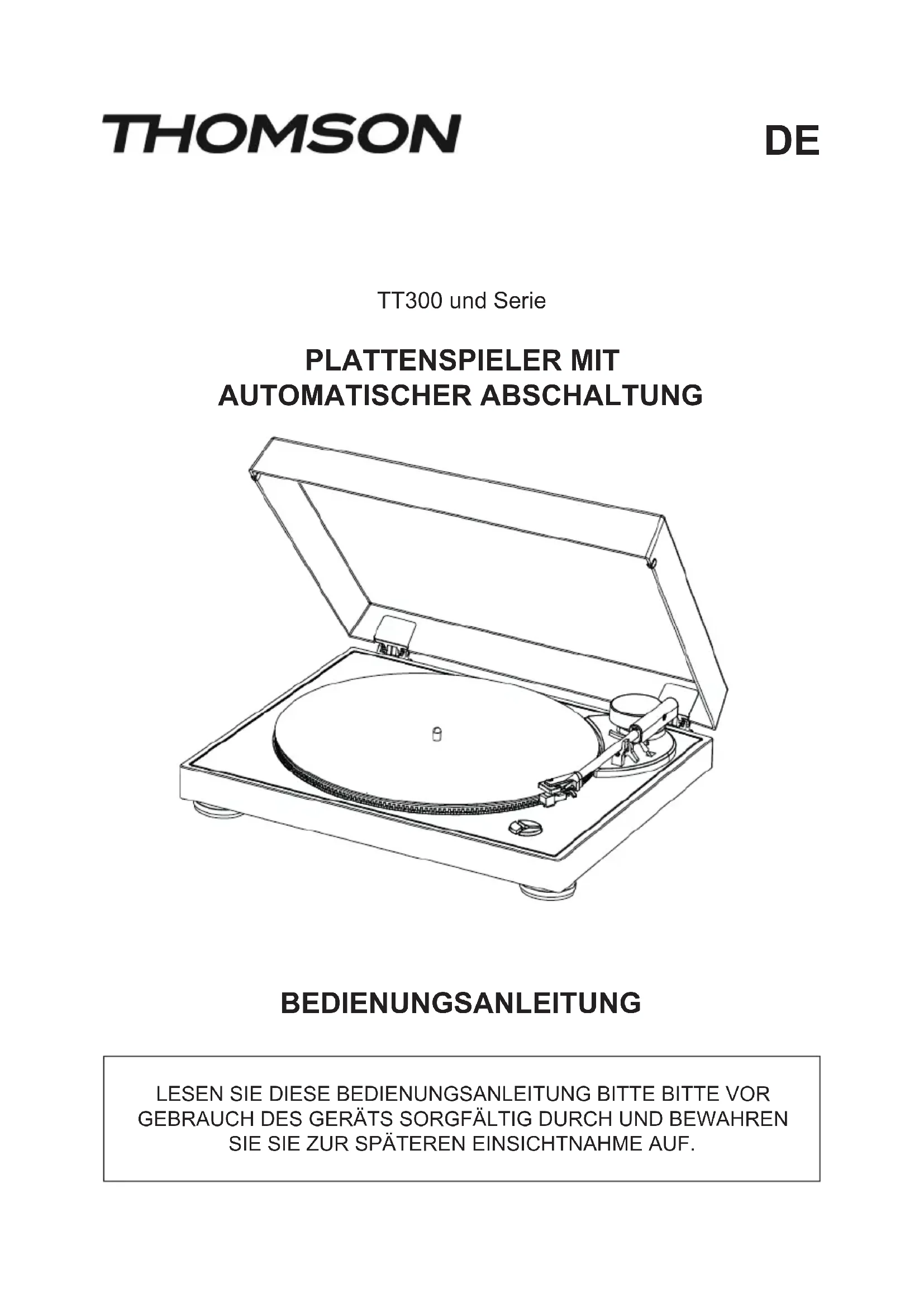 LESEN SIE DIESE BEDIENUNGSANLEITUNG BITTE BITTE VOR GEBRAUCH DES GERÄTS SORGFÄLTIG DURCH UND BEWAHREN SIE SIE ZUR SPÄTEREN EINSICHTNAHME AUF. TT300 und Serie PLATTENSPIELER MIT