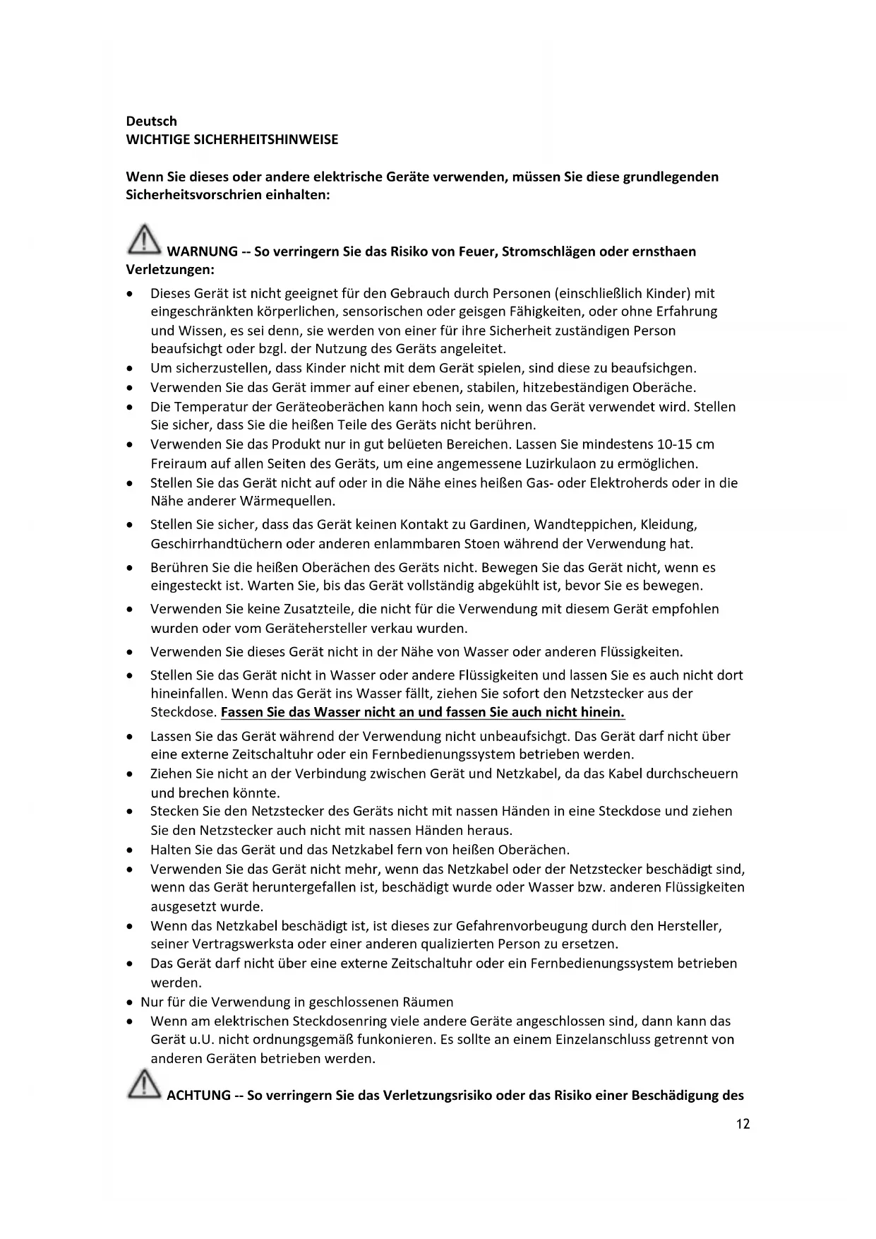 HINWEIS: Bei der erstmaligen Verwendung dieses Geräts kann sich Rauch bilden. Das ist normal und hört nach einiger Zeit auf.